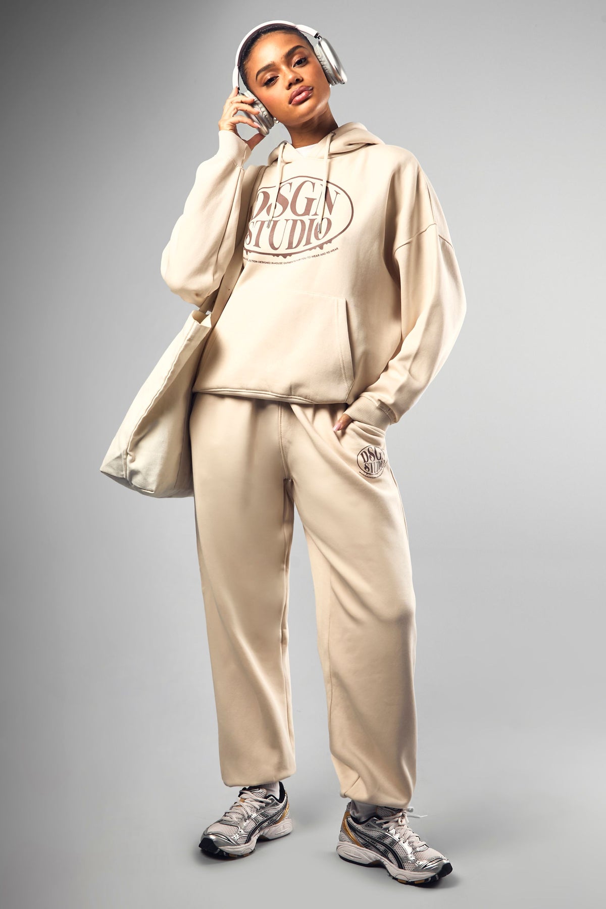Embrace laid-back chic with this Dsgn Studio Slogan Hooded Tracksuit from Boohoo. Perfect for those days when comfort is key but style is non-negotiable, this coordinated set offers a fresh take on casual wear. The oversized hoodie features a striking 'DSGN Studio' slogan print, adding a contemporary edge to your look. Pair with the matching tapered trousers for a cohesive outfit, or mix it up by styling the pieces separately. For a trendy athleisure vibe, team with chunky trainers and statement earrings. Whether you're lounging at home, running errands, or meeting friends for a casual brunch, this tracksuit ensures you'll look effortlessly cool. Its versatility makes it a wardrobe staple for the fashion-forward woman who values both comfort and style in her everyday attire.Discover DSGN Studio Slogan Hooded Tracksuit available to buy online at us.boohoo.com. Available with quick delivery and easy return options. Shop now!Discover DSGN Studio Slogan Hooded Tracksuit available to buy online at us.boohoo.com. Available with quick delivery and easy return options. Shop now!