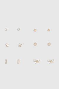 Six-piece stud earring set featuring charming bow details and varied designs
