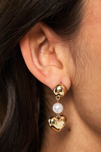 Charming drop earrings featuring lustrous pearl beads and polished heart charms