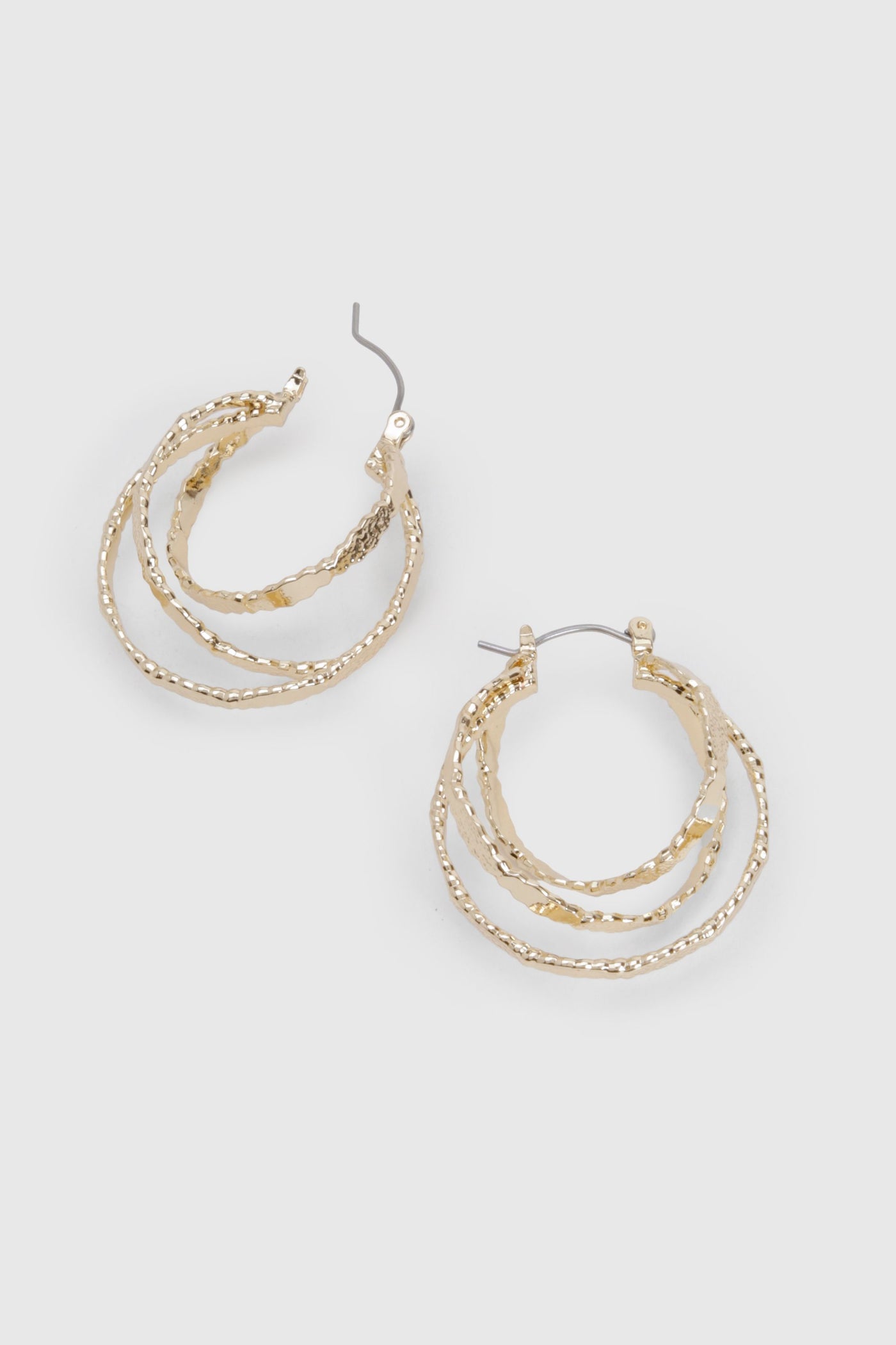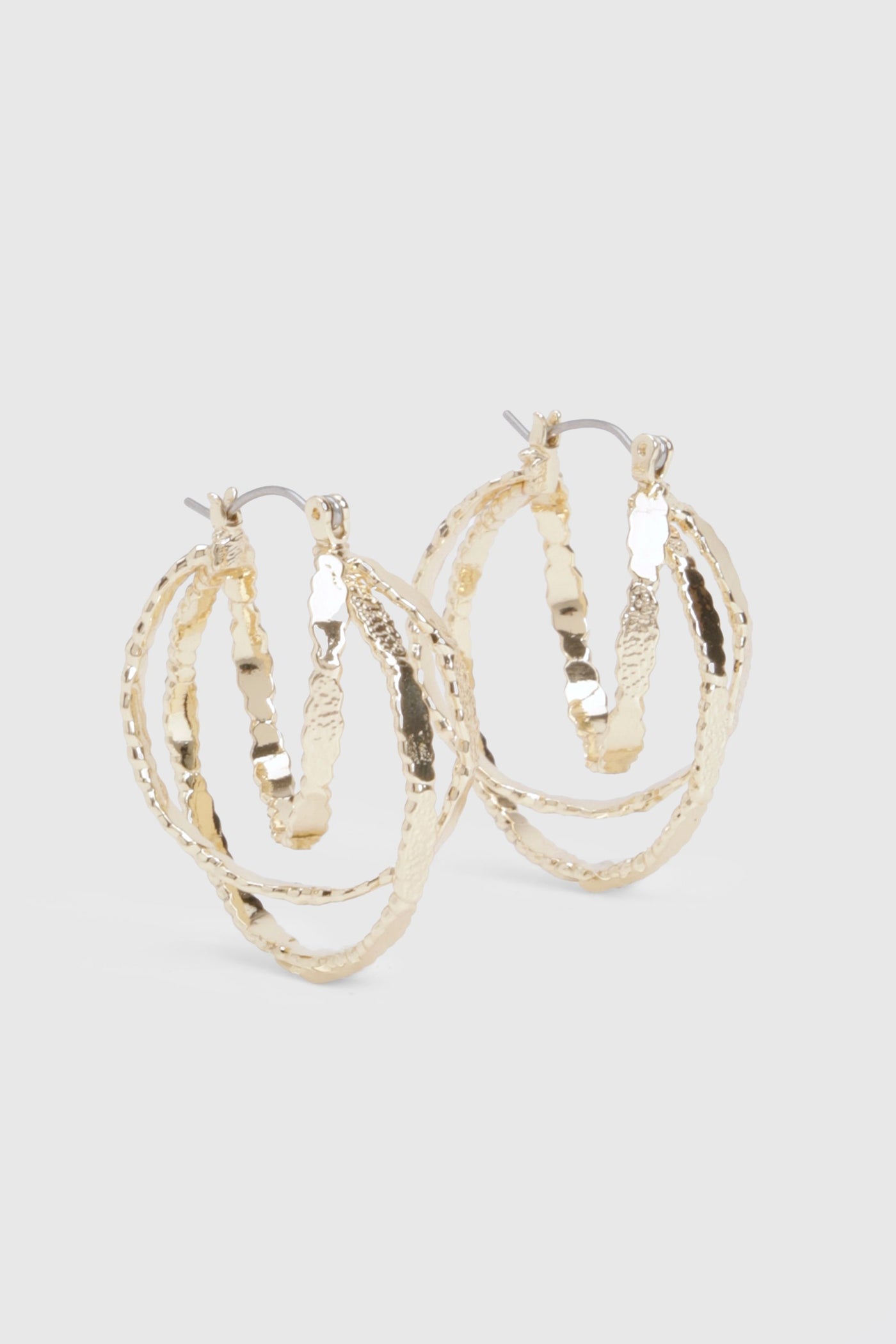 Make a dazzling impression with these textured triple hoop earrings, perfect for adding a touch of glamour to your night-out ensemble. The intricate design features three graduated hoops with a captivating textured surface, creating a multi-dimensional look that catches the light beautifully. Ideal for pairing with both casual and dressy outfits, these earrings are a versatile addition to your jewellery collection. Style them with a sleek off-shoulder top and high-waisted trousers for a chic evening look, or use them to add edge to a simple day dress. Whether you're heading to a trendy bar or meeting friends for drinks, these hoops will ensure you stand out in the urban nightlife scene. Their lightweight construction allows for comfortable wear throughout your night of fun and socialising.Discover Textured Triple Hoop Earrings available to buy online at us.boohoo.com. Available with quick delivery and easy return options. Shop now!Discover Textured Triple Hoop Earrings available to buy online at us.boohoo.com. Available with quick delivery and easy return options. Shop now!