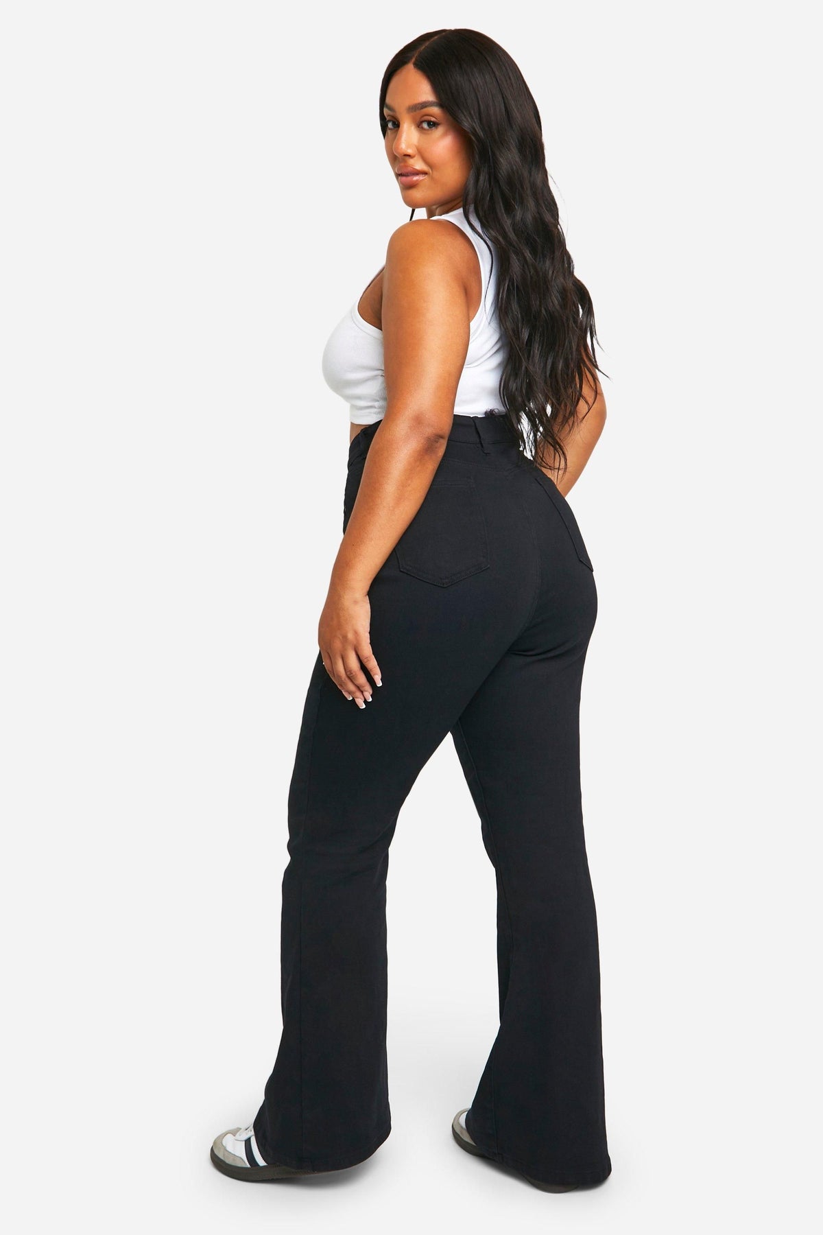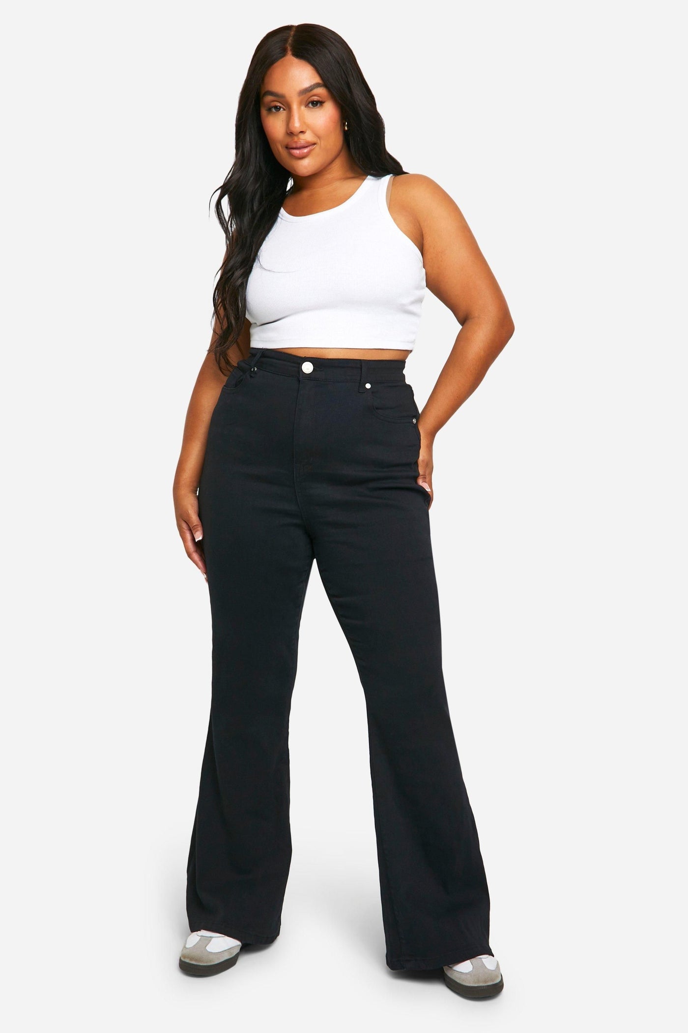 We've got your dream jeans covered with this latest pair from our plus size jeans collection. Made from a rigid denim that can be dressed up or down, these wardrobe staples are made with extra fabric to ensure the perfect fit. Pair with a relaxed-fit hoodie for off-duty days or team with a sparkly top and statement heels for a killer jeans-and-a-nice-top combo. Want more inspo? When it comes to versatile denim, plus size high waisted jeans are a perfect to show off your curves and flatter your waistline, just wear them with cropped jumpers or oversized t shirts. Style Flared JeansFabric WovenLength RegularDiscover Plus Denim Flared Jeans available to buy online at us.boohoo.com. Available with quick delivery and easy return options. Shop now!Discover Plus Denim Flared Jeans available to buy online at us.boohoo.com. Available with quick delivery and easy return options. Shop now!