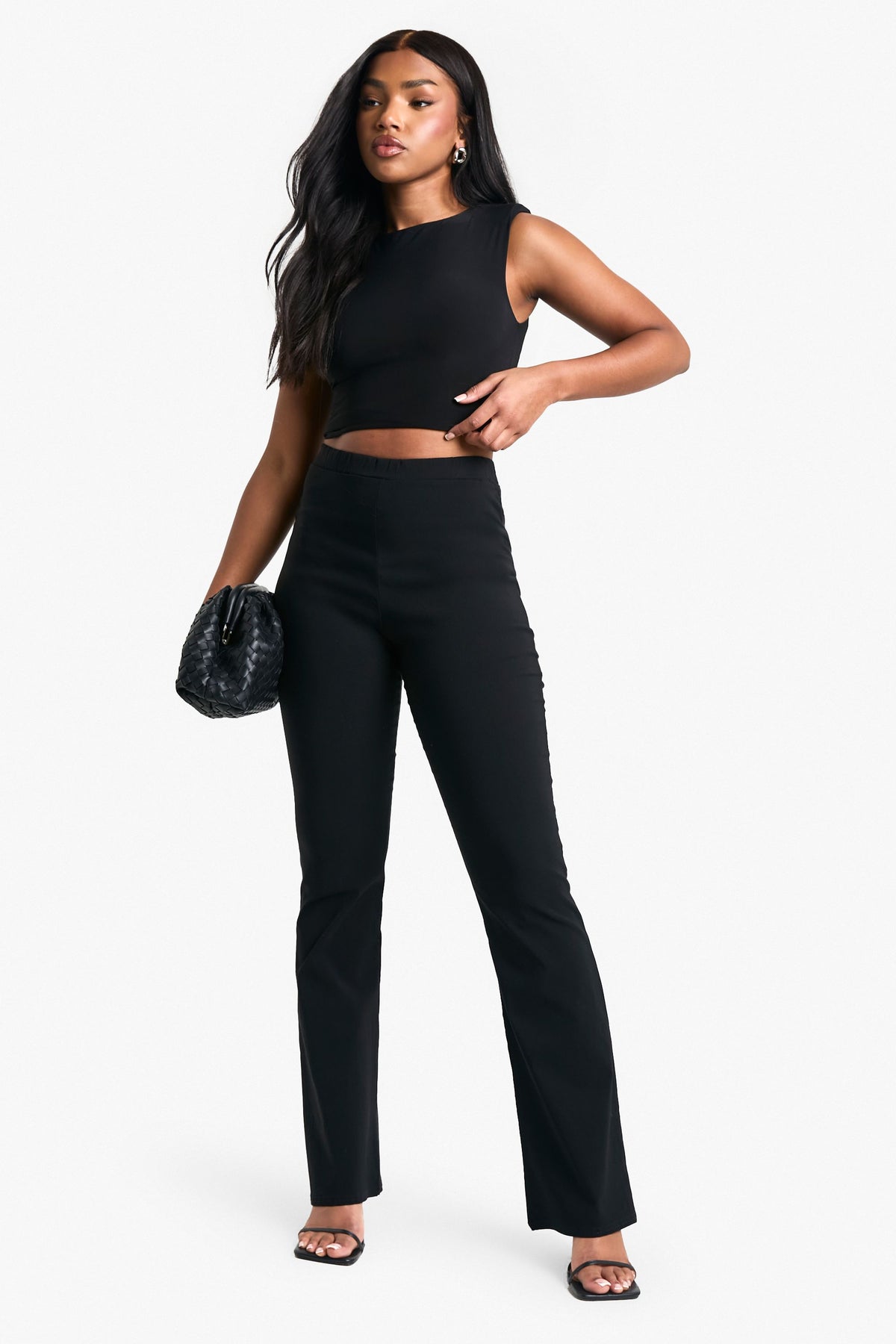 Make a statement with these eye-catching stretch flared trousers from Boohoo. Perfect for the fashion-forward woman who loves to stand out, these trousers combine comfort with style. The high-waisted design elongates your legs, while the flared cut adds a dash of retro flair to your look. Pair them with a cropped top, as shown, for a chic night out ensemble. Add some strappy heels and statement jewellery to complete your look. These trousers are ideal for a night at the club, drinks with friends, or any social gathering where you want to make an impression. Their stretchy fabric ensures you can dance the night away in comfort, while the sleek fit keeps you looking polished. Versatile enough to dress up or down, these trousers are a must-have addition to any fashion-lover's wardrobe.Discover Stretch High Waisted Flared Trousers available to buy online at us.boohoo.com. Available with quick delivery and easy return options. Shop now!Discover Stretch High Waisted Flared Trousers available to buy online at us.boohoo.com. Available with quick delivery and easy return options. Shop now!