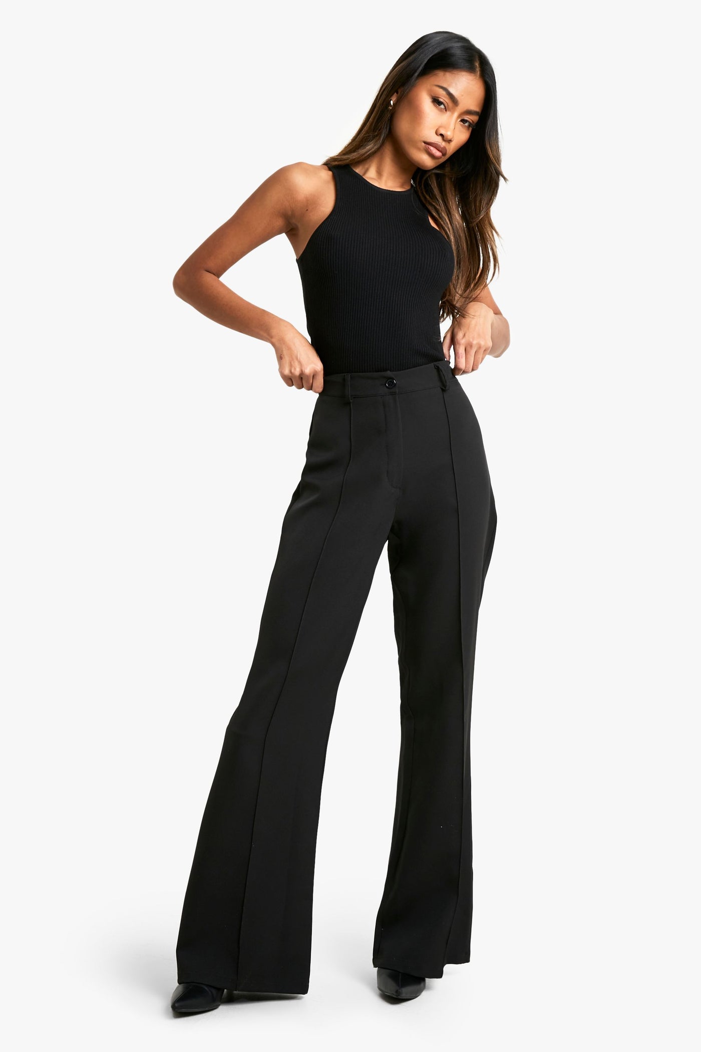 Make a statement with these eye-catching skinny flared trousers from Boohoo. The high-waisted design elongates your legs, while the front seam detail adds a touch of sophistication. Perfect for the fashion-forward woman who loves to stand out, these trousers effortlessly transition from day to night. For a casual daytime look, pair them with a fitted tank top and trainers. When the sun goes down, dress them up with a sleek bodysuit and strappy heels. The flared silhouette balances proportions beautifully, making them ideal for various body types. Whether you're heading to a family gathering or a night out with friends, these trousers offer both comfort and style. Customise your look with different tops and accessories to create multiple outfits that reflect your personal style.Discover Woven Seam Detail Flare Trouser available to buy online at us.boohoo.com. Available with quick delivery and easy return options. Shop now!Discover Woven Seam Detail Flare Trouser available to buy online at us.boohoo.com. Available with quick delivery and easy return options. Shop now!