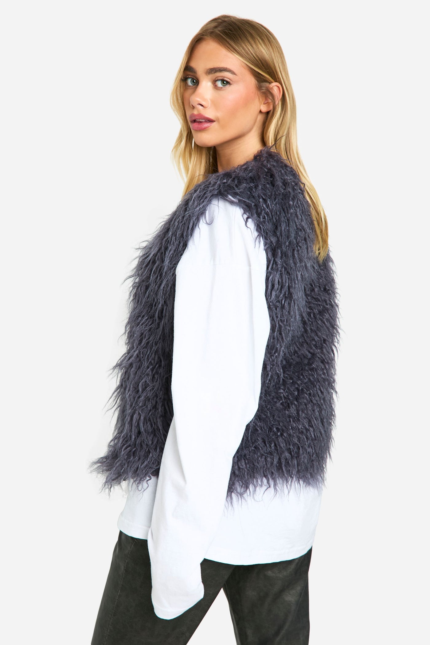 Embrace the chilly season with this fabulous faux fur vest that combines style and comfort effortlessly. Perfect for adding a touch of glamour to your casual ensembles, this versatile piece can be dressed up or down with ease. Layer it over a crisp white shirt and pair with wide-leg trousers for a chic daytime look, as seen on our model. For a cosy night in or a casual family gathering, throw it over a soft jumper and team with your favourite jeans and trainers. The cropped length makes it ideal for highlighting high-waisted bottoms, while the open front allows for easy styling over various outfits. Whether you're heading to a laid-back brunch or a casual evening out, this faux fur vest will keep you warm and stylish throughout the autumn and winter months.Discover Faux Mongolian Fur Gilet available to buy online at us.boohoo.com. Available with quick delivery and easy return options. Shop now!Discover Faux Mongolian Fur Gilet available to buy online at us.boohoo.com. Available with quick delivery and easy return options. Shop now!