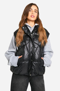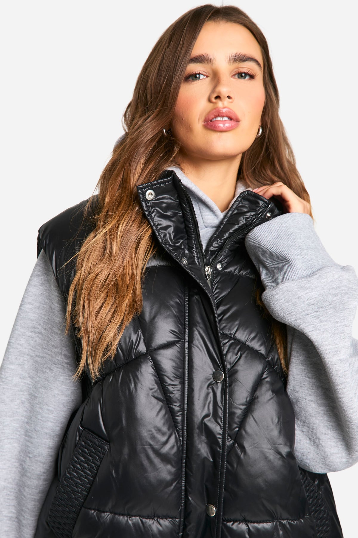 This versatile padded vest is a must-have addition to your casual wardrobe. The unique shoulder detailing adds a contemporary twist to the classic puffer style, making it a standout piece for any outfit. Layer it over a cosy hoodie, as shown, for a trendy street-style look that's perfect for brisk autumn days or casual weekend outings. The sleeveless design allows for unrestricted movement, ideal for active days about town or relaxed family gatherings. Pair with wide-leg trousers and trainers for a fashion-forward ensemble that balances comfort and style. This Boohoo vest is an excellent choice for the fashion-conscious woman who values both practicality and on-trend aesthetics in her everyday wear.Discover Shoulder Detail Padded Gilet available to buy online at us.boohoo.com. Available with quick delivery and easy return options. Shop now!Discover Shoulder Detail Padded Gilet available to buy online at us.boohoo.com. Available with quick delivery and easy return options. Shop now!