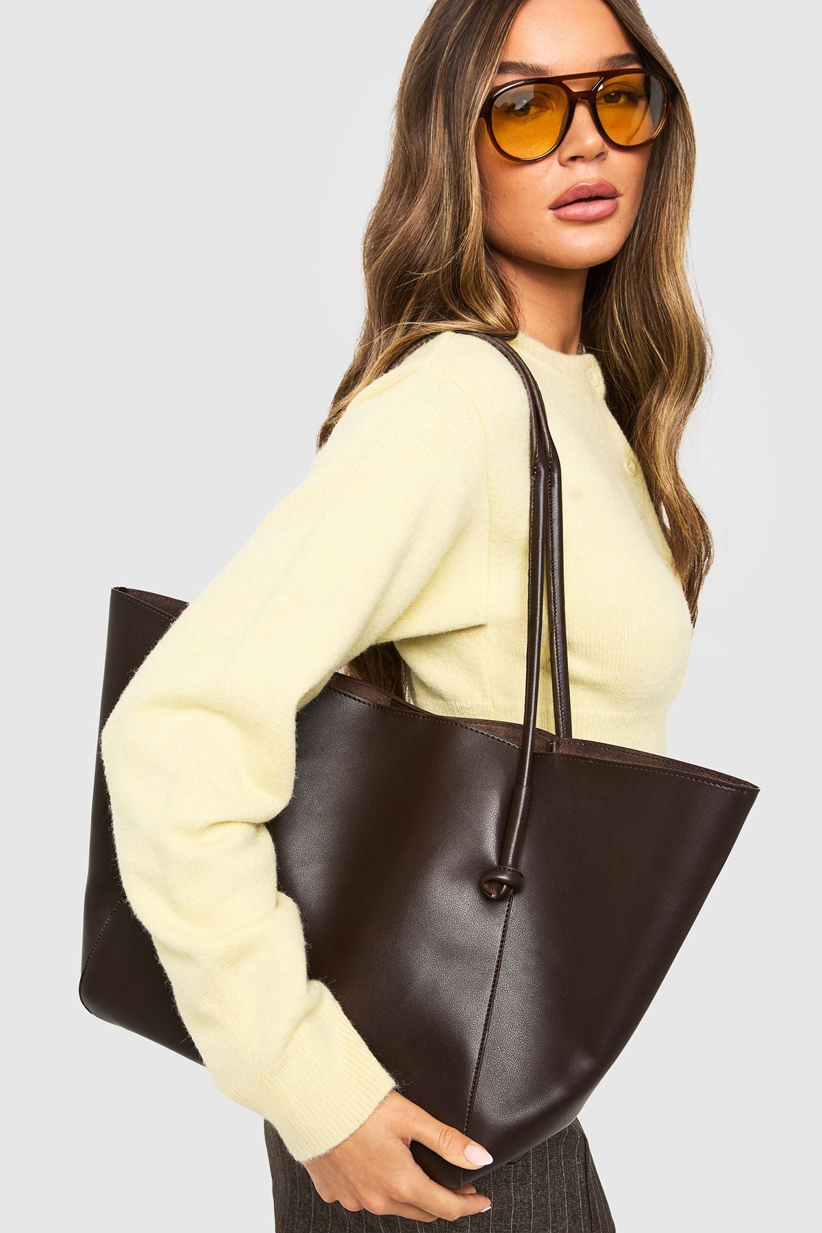 Make a statement with this large structured tote bag, designed for the fashion-forward woman who values both style and practicality. The clean lines and architectural shape create a sophisticated silhouette that works brilliantly with any outfit in your wardrobe. Style it as shown with a cosy jumper and tailored trousers for an effortlessly chic daytime look, or pair with a midi dress and ankle boots for shopping trips with the girls. The generous interior provides ample space for your laptop, makeup bag, and daily necessities, making it the perfect companion for university lectures, office days, or weekend brunches. This versatile tote transitions seamlessly from day to night, ensuring you're always prepared without compromising on style. A true wardrobe essential that combines fashion with function for the modern Boohoo woman.Discover Large Structured Tote Bag available to buy online at us.boohoo.com. Available with quick delivery and easy return options. Shop now!Discover Large Structured Tote Bag available to buy online at us.boohoo.com. Available with quick delivery and easy return options. Shop now!