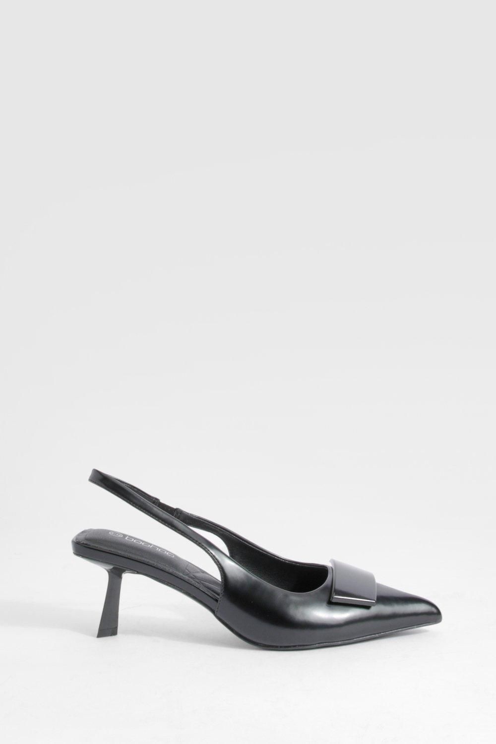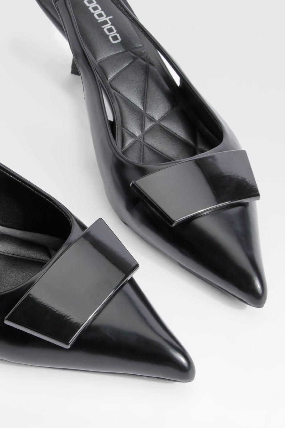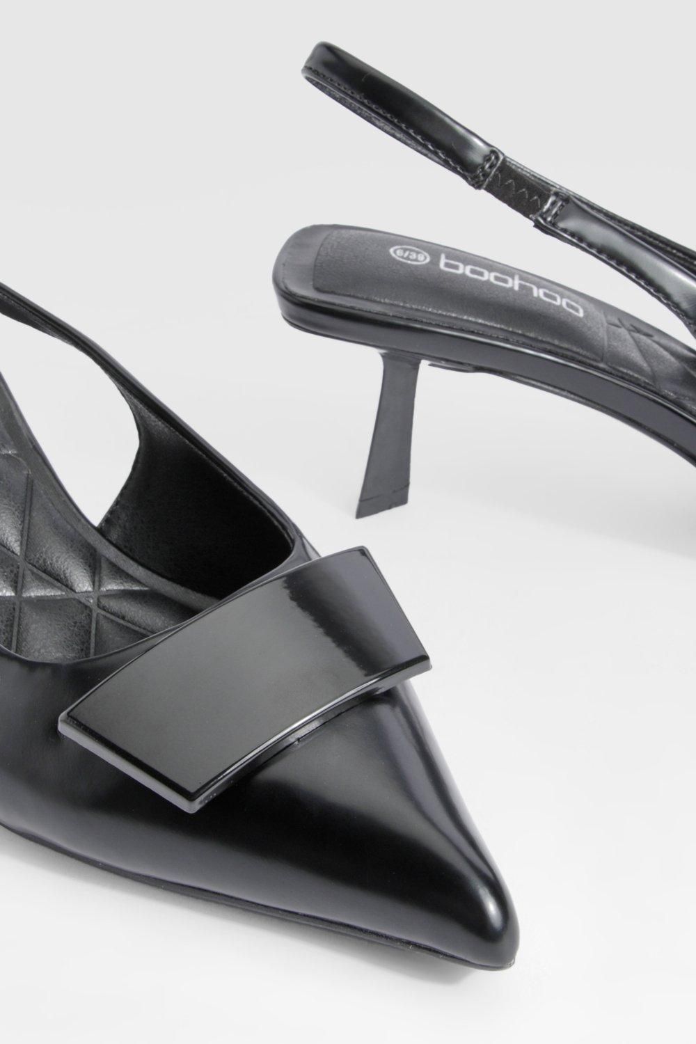 Step out in style with these chic low slingback court shoes. The pointed toe silhouette and sleek design make these heels a versatile choice for your wardrobe. Perfect for a night out with friends or a casual dinner date, these shoes strike the ideal balance between comfort and elegance. The low heel height ensures you can dance the night away without compromising on style. Pair them with your favourite little black dress for a classic look, or dress them down with cropped trousers and a blouse for a more relaxed ensemble. The slingback strap provides a secure fit, while the decorative rectangular detail on the vamp adds a touch of interest. These courts are a must-have for the fashion-forward woman who values both style and practicality in her footwear choices.Discover Low Slingback Point Heeled Courts available to buy online at us.boohoo.com. Available with quick delivery and easy return options. Shop now!Discover Low Slingback Point Heeled Courts available to buy online at us.boohoo.com. Available with quick delivery and easy return options. Shop now!