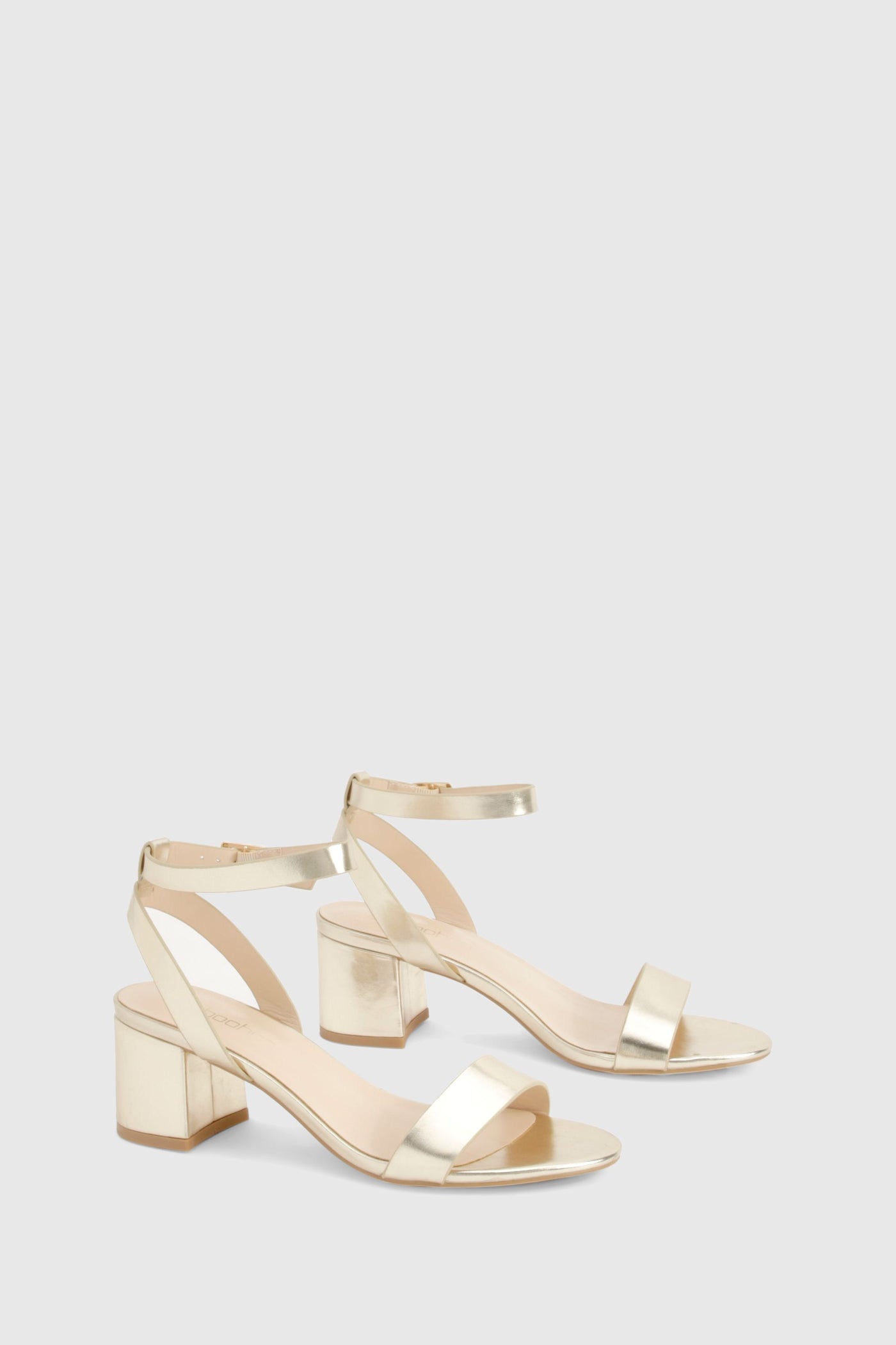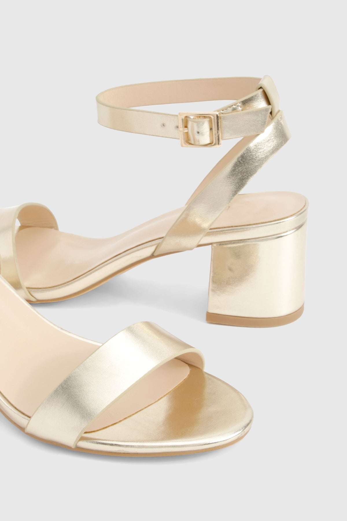 Step out in style with these chic metallic two-piece heels. The low block heel offers the perfect balance of comfort and elegance, making them ideal for a night out on the town or a special event. The adjustable ankle strap ensures a secure fit, while the open toe design adds a touch of allure. Pair these versatile shoes with a sleek midi dress and statement earrings for a head-turning ensemble at your next cocktail party. Alternatively, dress them down with cropped trousers and a silky blouse for a sophisticated daytime look. Whether you're dancing the night away or attending a garden party, these shoes will keep you looking stylish from dusk till dawn.Discover Metallic Low Block Barely There Heels available to buy online at us.boohoo.com. Available with quick delivery and easy return options. Shop now!Discover Metallic Low Block Barely There Heels available to buy online at us.boohoo.com. Available with quick delivery and easy return options. Shop now!