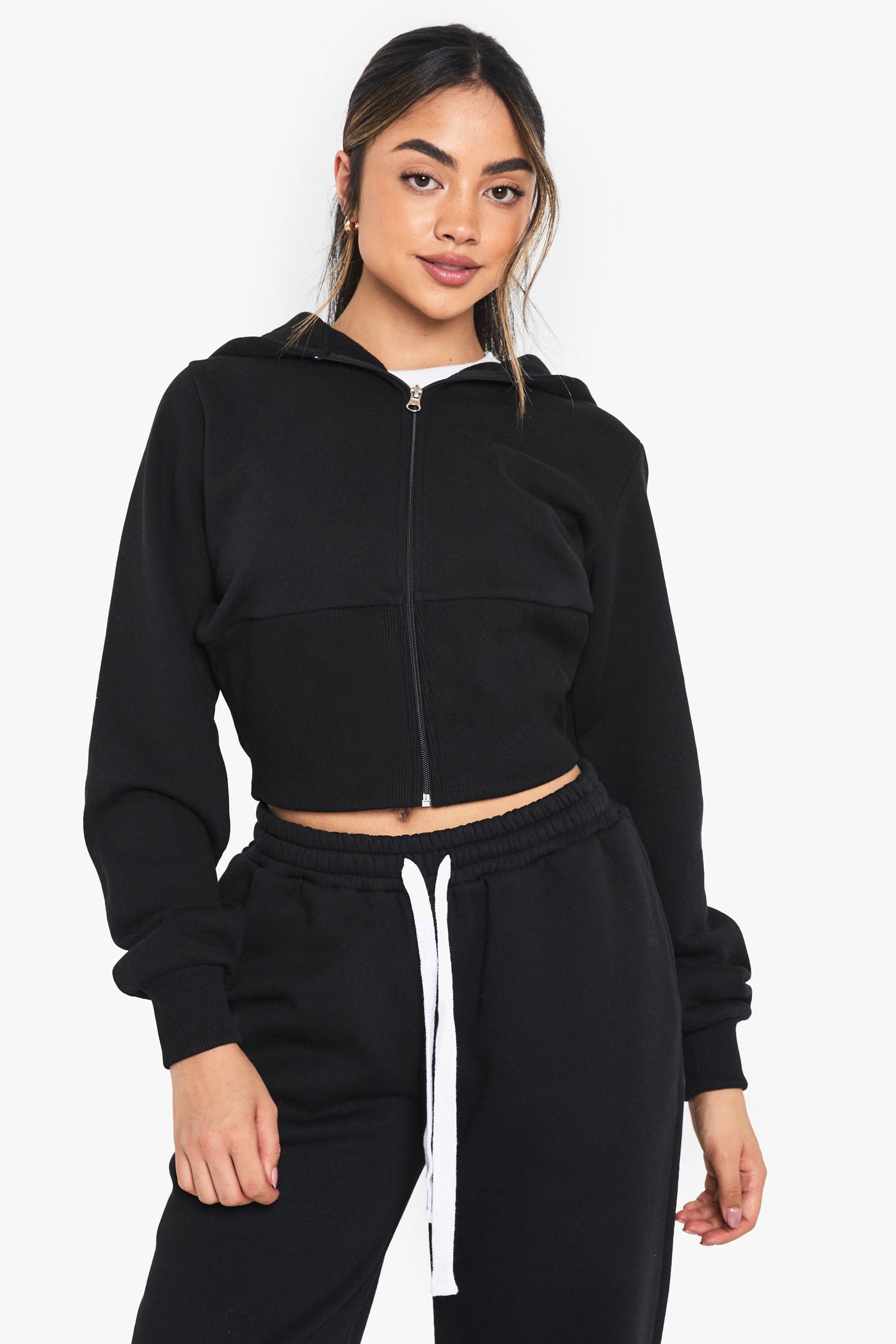 Cropped zip-through hoodie with relaxed shoulders for effortless movement