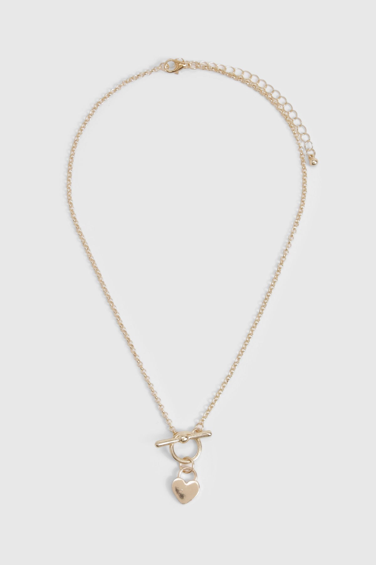 Add a dash of romance to your everyday look with this charming T-bar and heart necklace. The delicate chain and dainty charms make it perfect for layering with other pieces or wearing solo for a minimalist vibe. Its versatile design transitions seamlessly from day to night, complementing both casual ensembles and dressier outfits. Pair it with a V-neck jumper and your favourite jeans for a laid-back weekend brunch, or let it peek out from beneath a collared blouse at the office. For evening gatherings, this necklace adds a subtle sparkle to a little black dress or a silky camisole and tailored blazer combo. Its adjustable length allows you to customise the fit, making it a go-to accessory for various necklines and occasions. Whether you're heading to a family dinner or meeting friends for coffee, this necklace offers a touch of effortless chic to your ensemble.Discover T-Bar & Heart Necklace available to buy online at us.boohoo.com. Available with quick delivery and easy return options. Shop now!Discover T-Bar & Heart Necklace available to buy online at us.boohoo.com. Available with quick delivery and easy return options. Shop now!