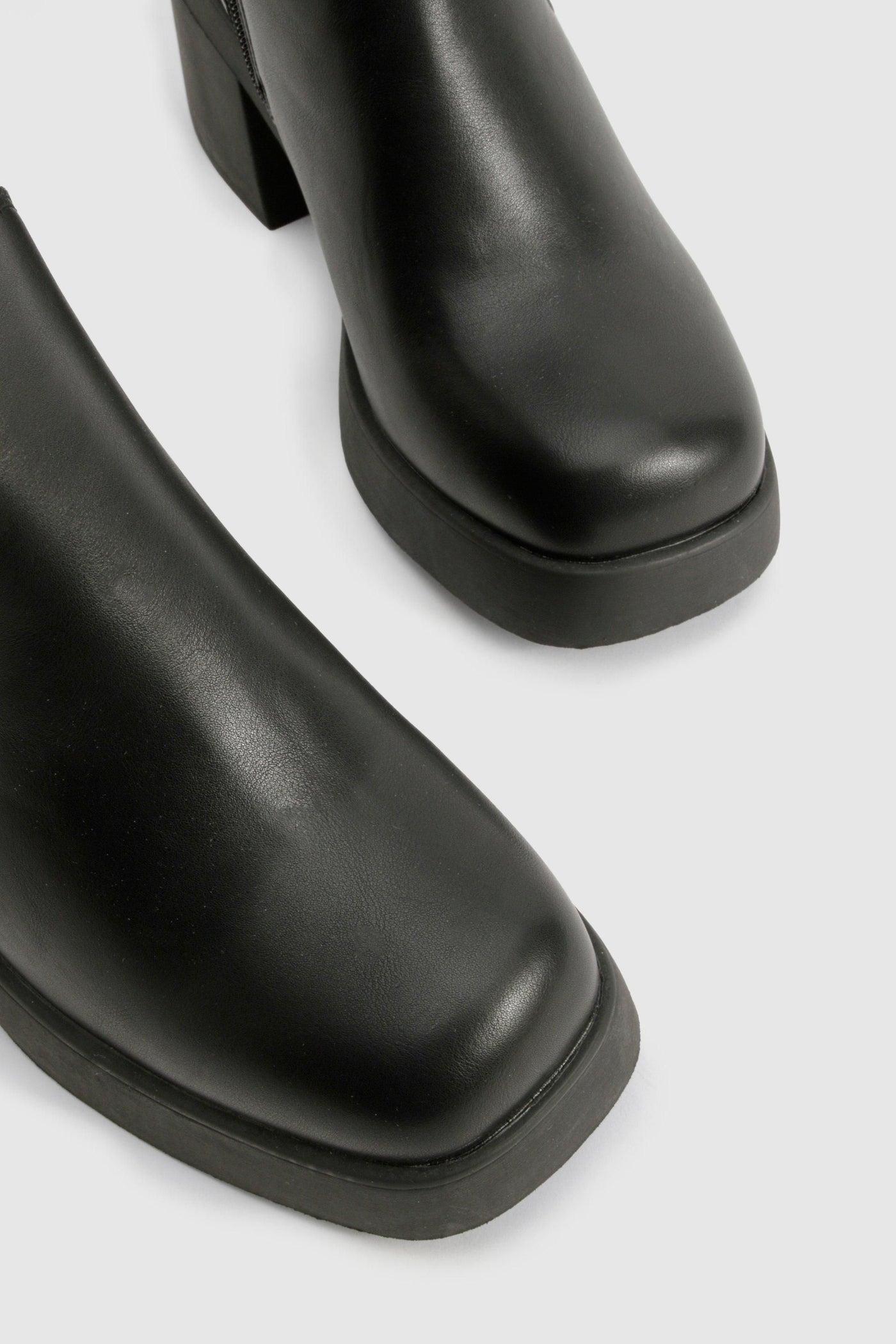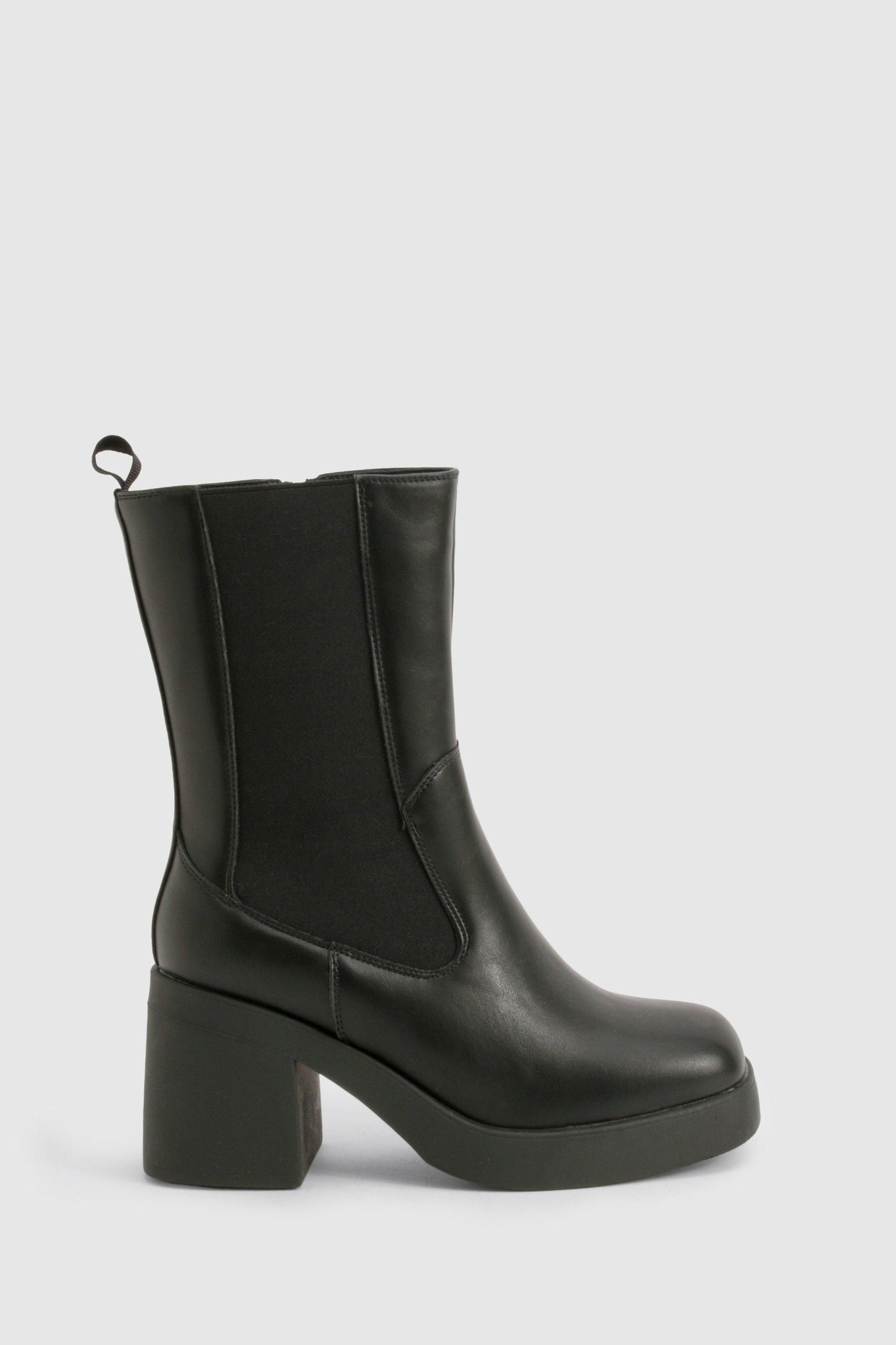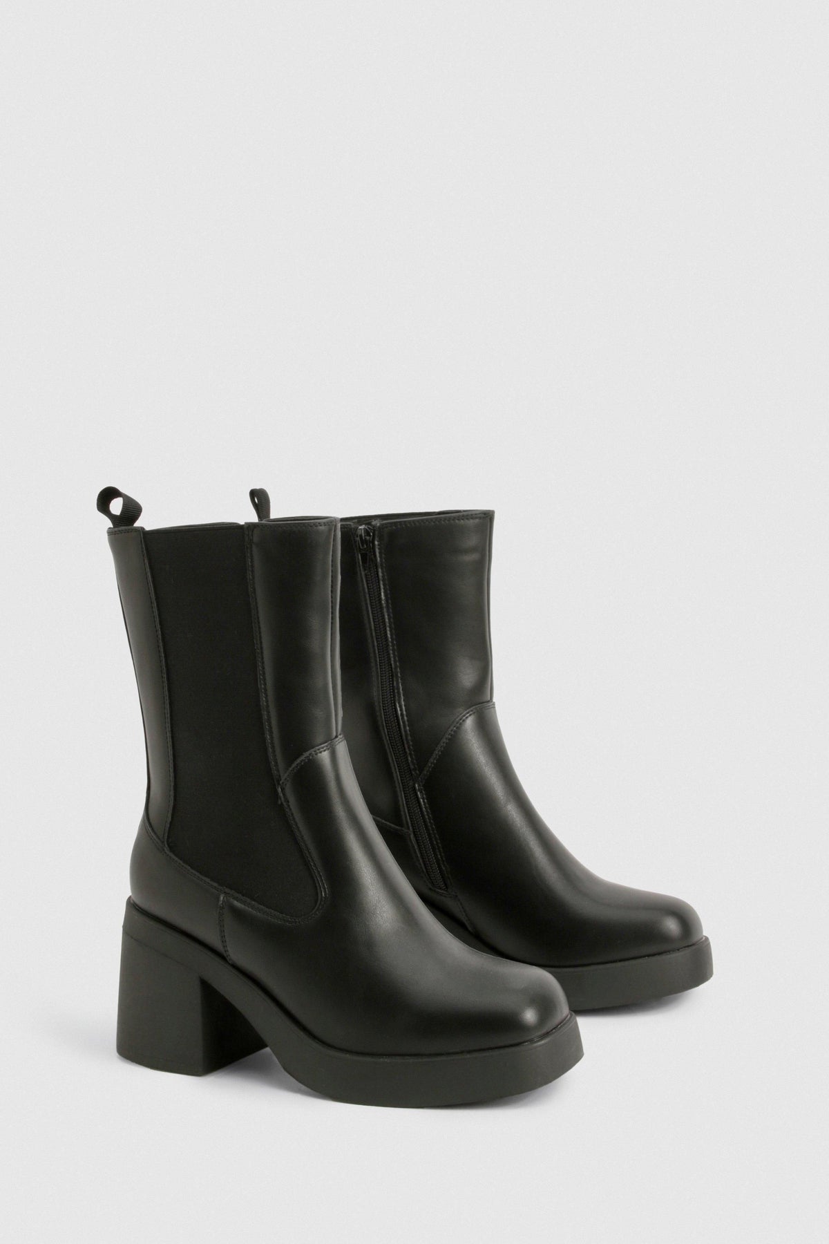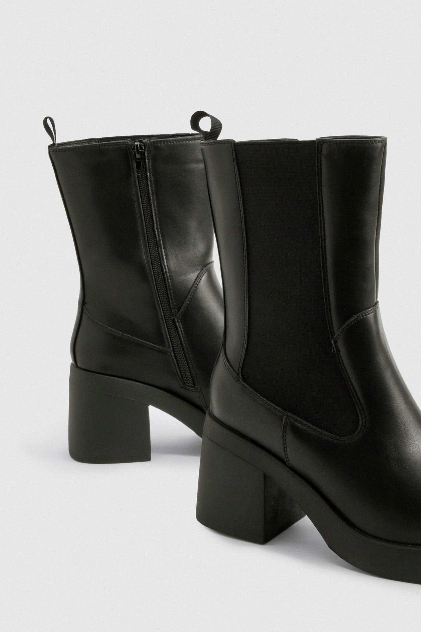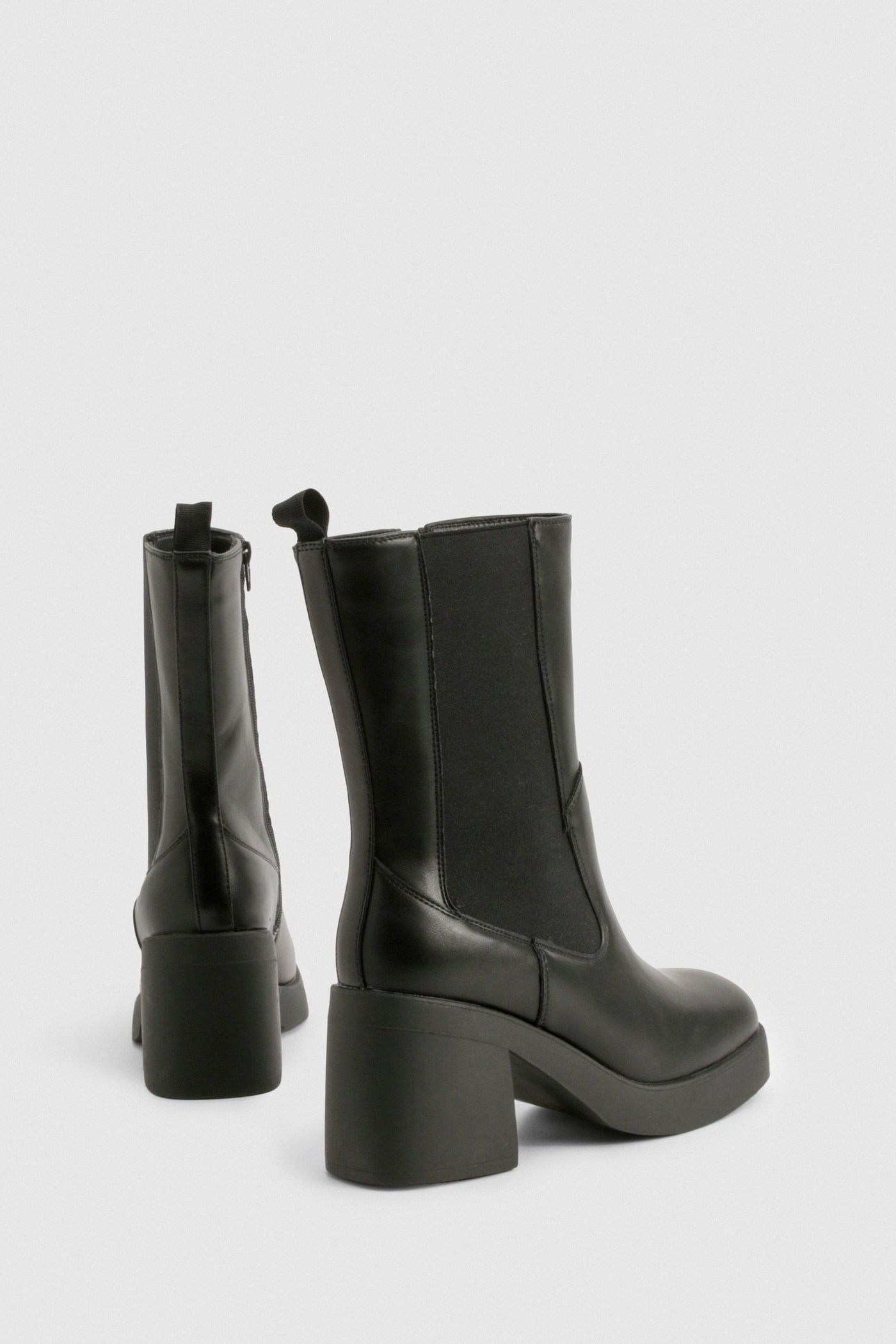 Step into bold style with these eye-catching chunky boots. Perfect for the fashion-forward trendsetter, these wide fit boots offer both comfort and cutting-edge design. The mid-calf length and elastic side panels make them a breeze to slip on and off, while the chunky platform sole and block heel add a fierce edge to any outfit. Pair them with a pleated mini skirt and oversized jumper for a chic daytime look, or team with a bodycon dress for a night out on the town. Versatile enough for casual outings or family gatherings, these boots will quickly become your go-to footwear for making a statement. The synthetic leather upper ensures durability, while the wide fit caters to those seeking extra room without compromising on style. Whether you're strolling through the city or dancing the night away, these boots are designed to keep you comfortable and fashionable from dawn to dusk.Discover Wide Fit Tab Detail Chunky Calf High Boots available to buy online at us.boohoo.com. Available with quick delivery and easy return options. Shop now!Discover Wide Fit Tab Detail Chunky Calf High Boots available to buy online at us.boohoo.com. Available with quick delivery and easy return options. Shop now!