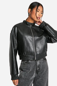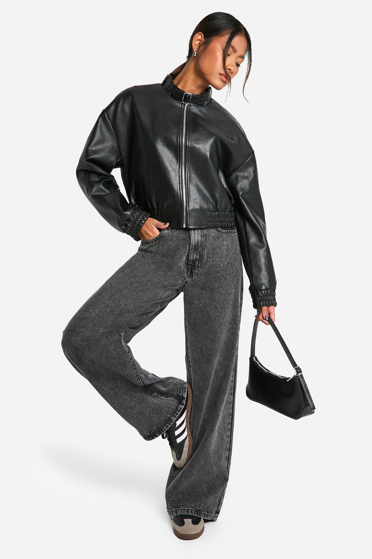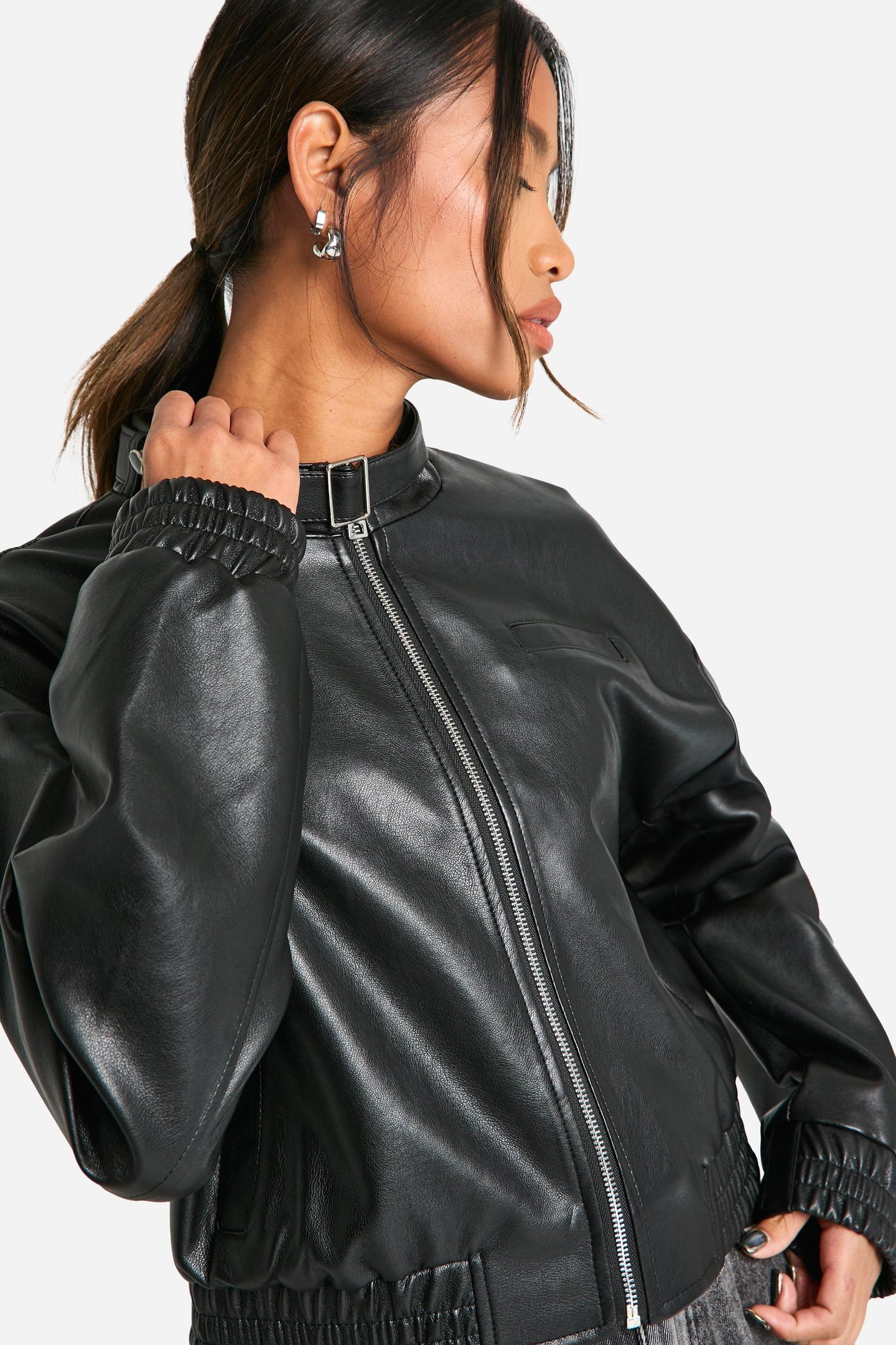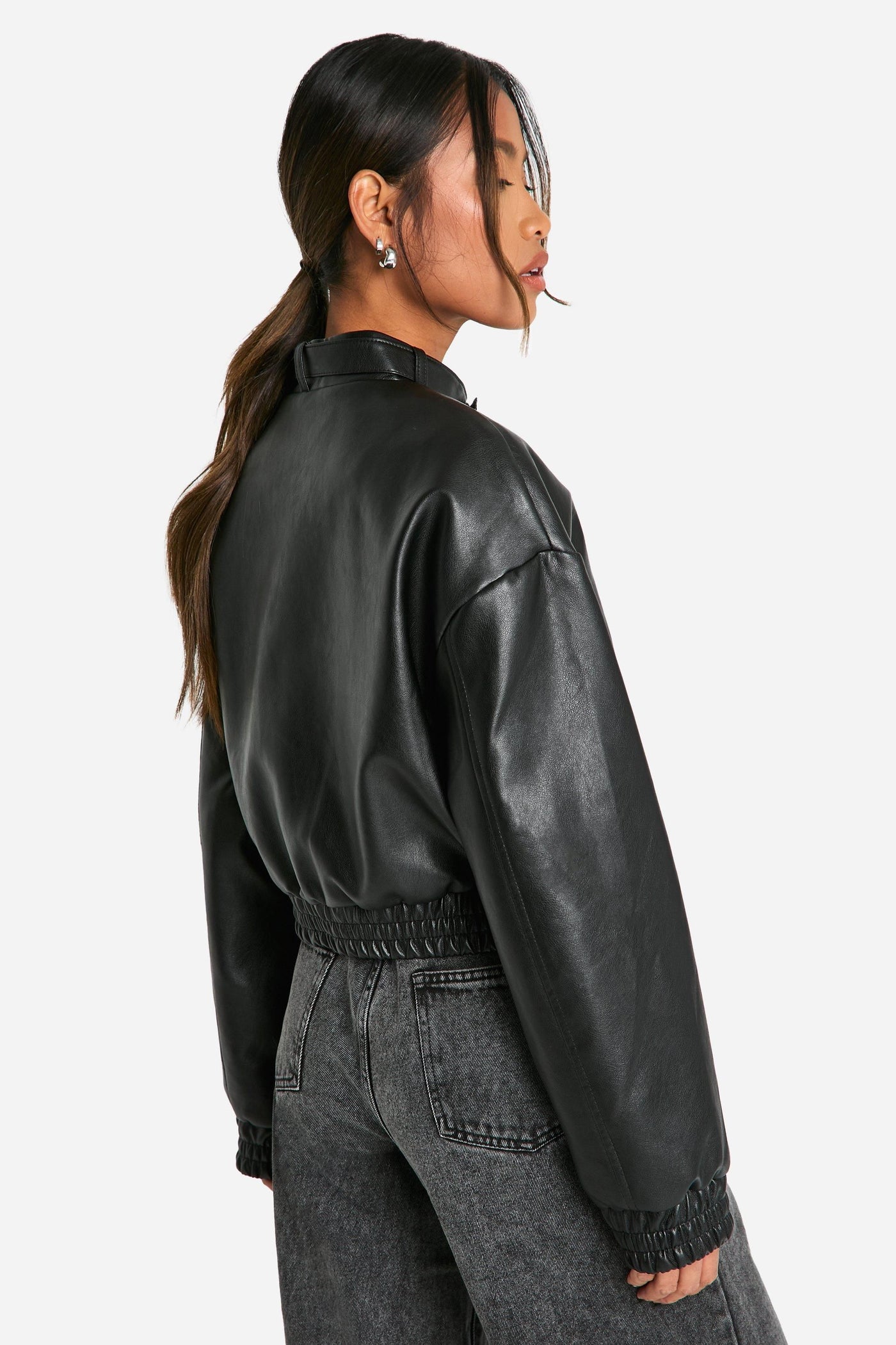 Make a bold statement with this edgy faux leather bomber jacket from Boohoo. The unique collar detail adds a contemporary touch to the classic silhouette, while the cropped length creates a flattering profile. Style it with high-waisted wide-leg jeans and chunky trainers for a casual day out, or dress it up with a midi skirt and ankle boots for an evening with friends. The versatile design makes it ideal for various occasions, from family gatherings to casual outings. Layer it over a turtleneck jumper on cooler days or pair it with a crop top when the weather warms up. This jacket is a must-have piece for the fashion-forward woman who wants to stay on-trend without compromising on comfort or style.Discover Collar Detail Faux Leather Bomber Jacket available to buy online at us.boohoo.com. Available with quick delivery and easy return options. Shop now!Discover Collar Detail Faux Leather Bomber Jacket available to buy online at us.boohoo.com. Available with quick delivery and easy return options. Shop now!