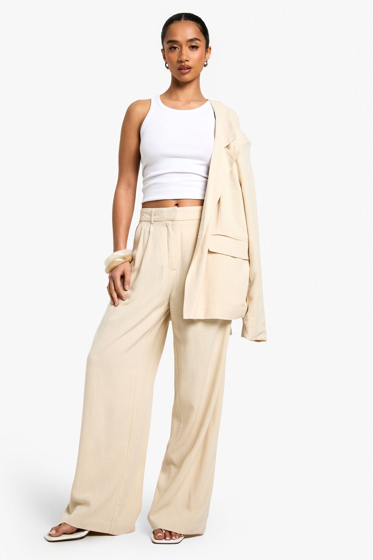 These petite straight leg trousers combine comfort with contemporary style, making them a versatile addition to your wardrobe. The linen-look fabric offers a natural texture that works beautifully for casual daytime events. Style with a fitted crop top as shown for a balanced silhouette, or tuck in a crisp white shirt for a more polished look. Perfect for family gatherings or weekend brunches when paired with minimalist sandals and delicate jewellery. For cooler days, layer with an oversized blazer as pictured for an effortlessly chic ensemble. The neutral tone makes these trousers incredibly versatile - dress them down with trainers for daytime outings or customise your look with statement accessories for casual evening events.Discover Petite Linen Look Straight Leg Trousers available to buy online at us.boohoo.com. Available with quick delivery and easy return options. Shop now!Discover Petite Linen Look Straight Leg Trousers available to buy online at us.boohoo.com. Available with quick delivery and easy return options. Shop now!