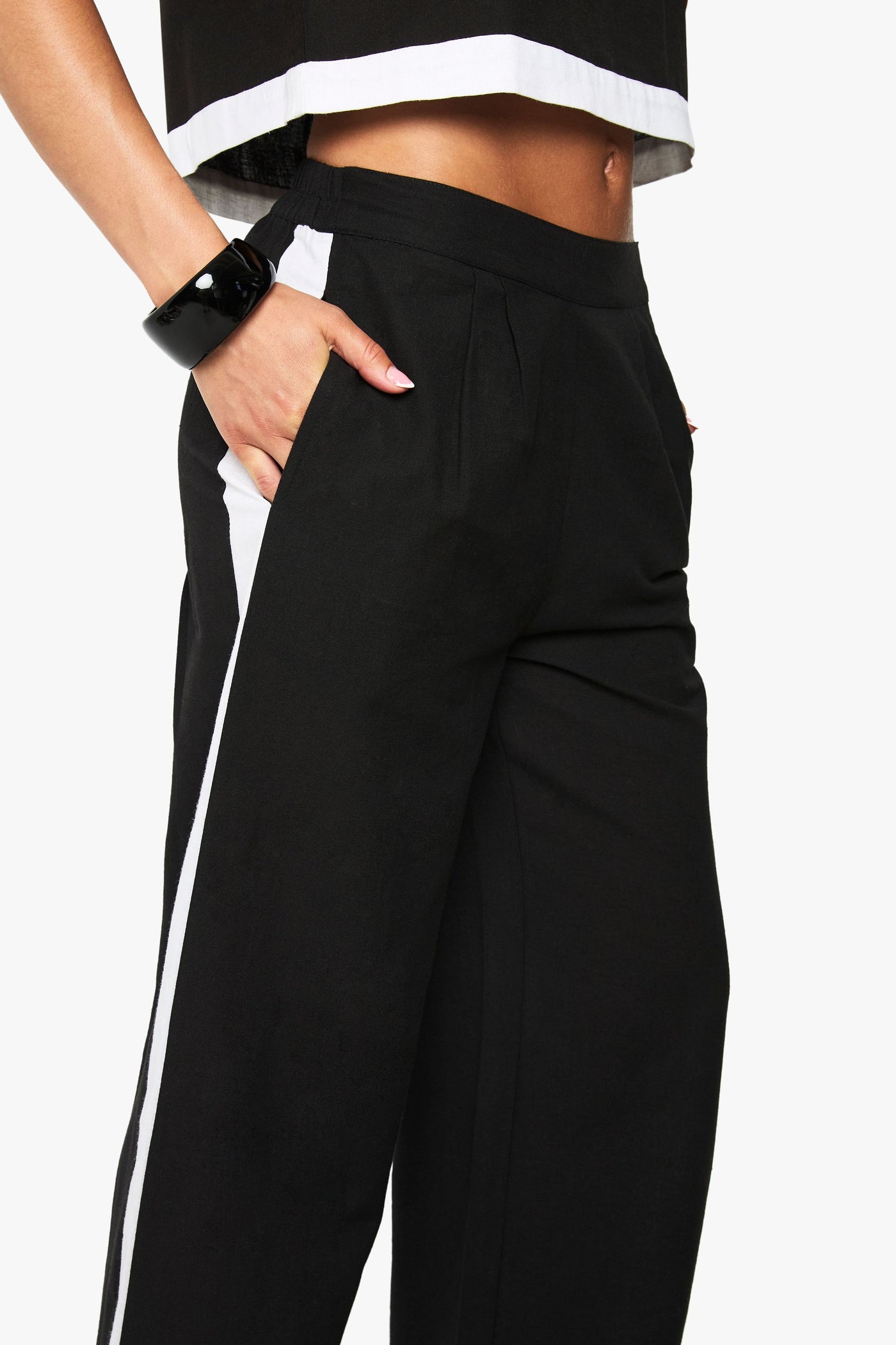 Contrast Stripe Linen Trousers