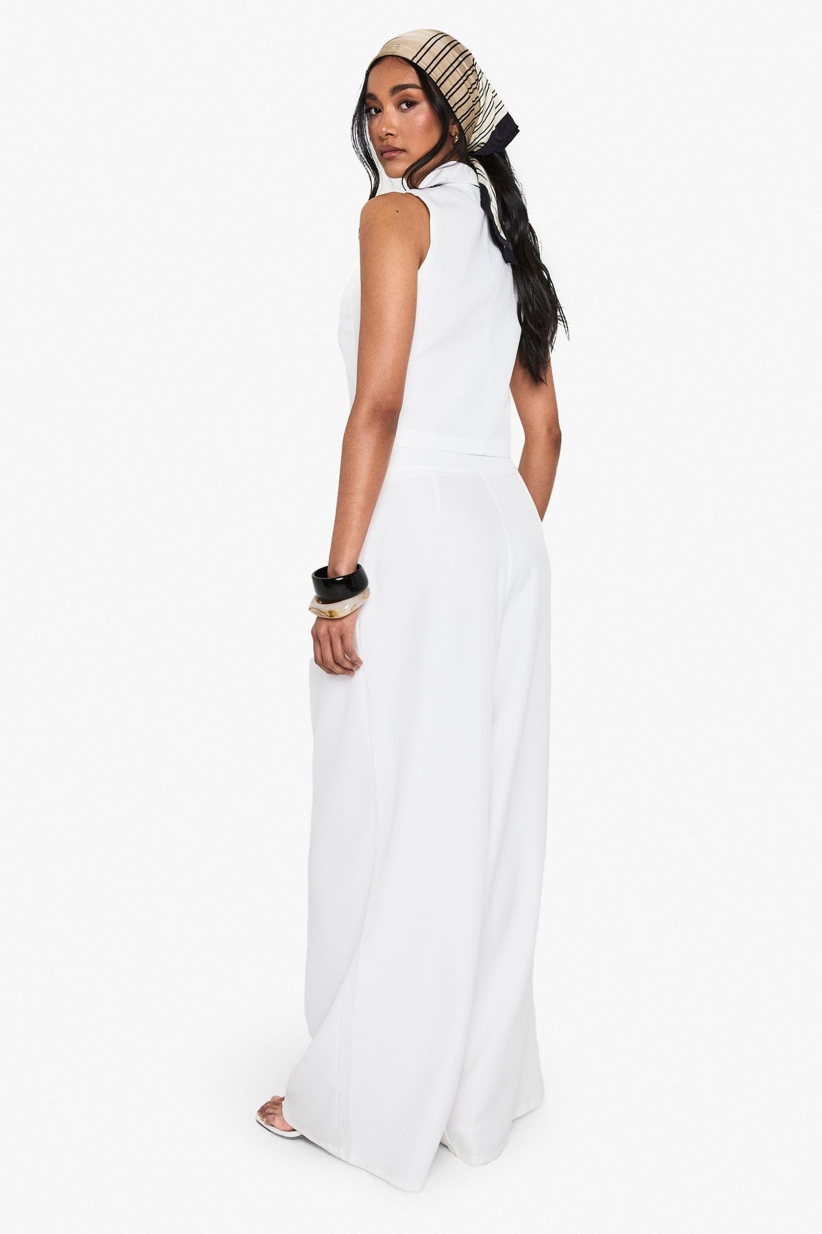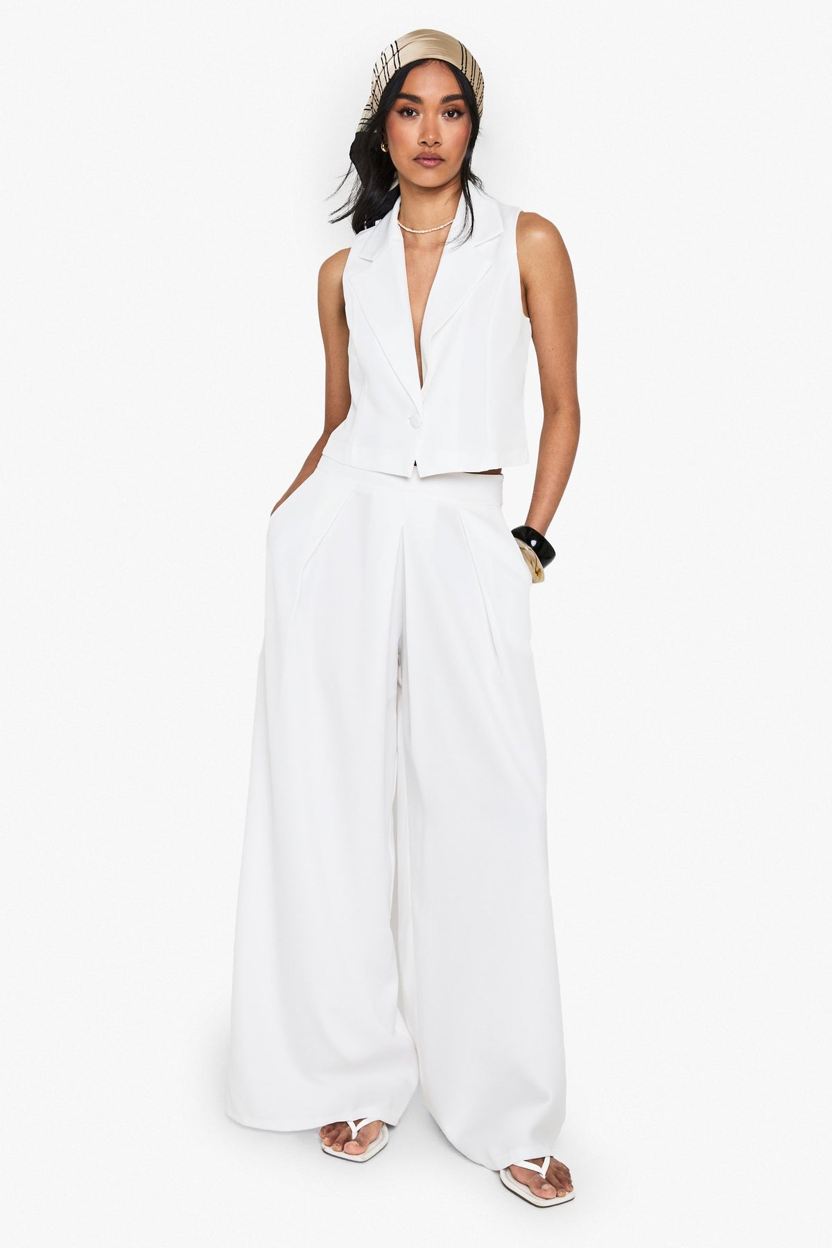 Linen Look Pleat Front Wide Leg Tailored Trousers