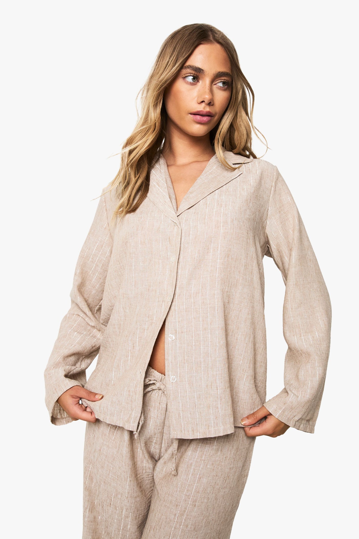 Subtle stripe pattern throughout the co-ord set