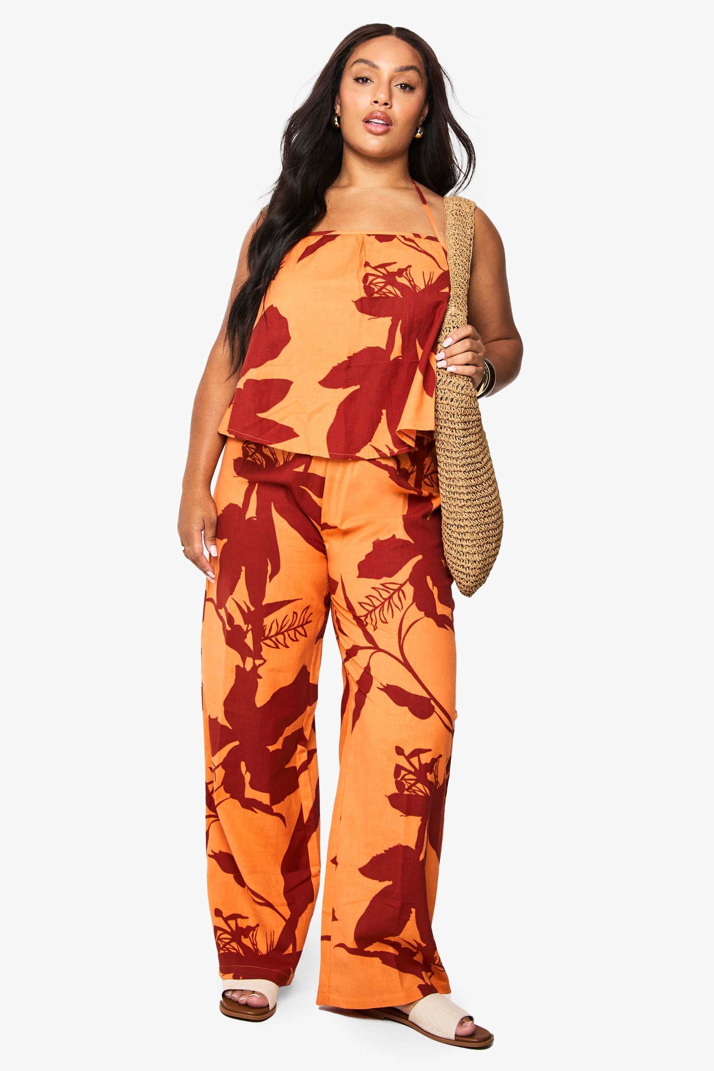 Make a statement this season with these eye-catching abstract floral linen trousers from Boohoo's plus collection. The breezy wide-leg cut offers both comfort and style, whilst the high waistline creates a flattering silhouette that works for all body types. Style these standout trousers with the matching overlay top as shown for a coordinated ensemble, or pair with a simple vest top for a more casual approach. Add flat sandals and a woven tote bag for daytime outings or family gatherings. These trousers transition effortlessly from garden parties to casual brunches with friends. The breathable cotton construction ensures all-day comfort even during warmer months, whilst the bold print adds character to your wardrobe. These trousers are the perfect addition to your holiday capsule wardrobe - simply throw on with slides and oversized sunglasses for an instant style win.Discover Plus Abstract Floral Linen Trousers available to buy online at us.boohoo.com. Available with quick delivery and easy return options. Shop now!Discover Plus Abstract Floral Linen Trousers available to buy online at us.boohoo.com. Available with quick delivery and easy return options. Shop now!