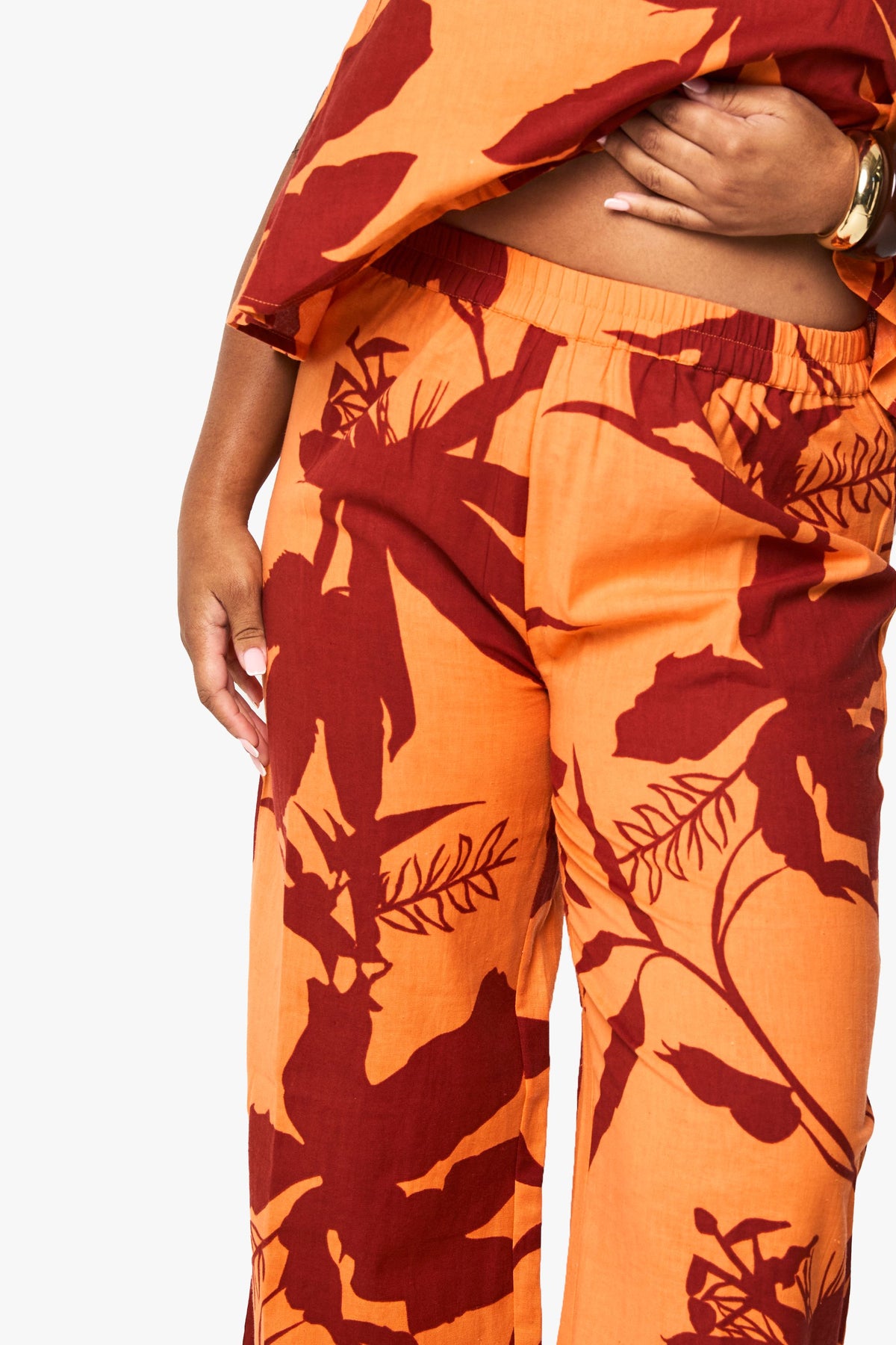 Striking abstract floral print trousers with a relaxed wide-leg silhouette