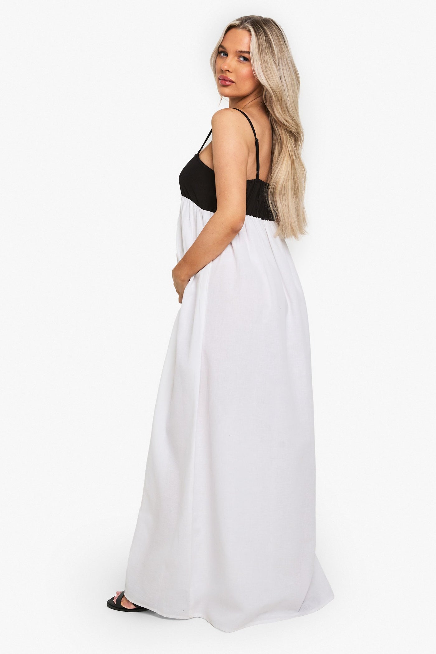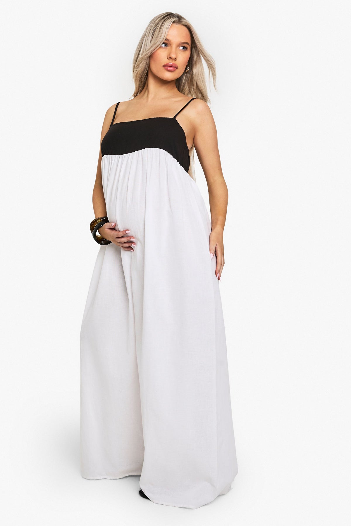 This chic maternity maxi dress combines comfort and style with its contrasting bodice and flowing linen design. The empire waistline creates a flattering silhouette that grows with your bump, whilst the lightweight linen fabric ensures breathability throughout your pregnancy journey. Style with flat sandals and a woven bag for casual daytime outings, or dress up with layered bangles and oversized sunglasses for family gatherings. The versatile design transitions effortlessly from brunch dates to beach strolls, making it a wardrobe essential for expectant mums. The practical side pockets add functionality to this breezy piece, perfect for keeping small essentials close at hand. Embrace your changing shape with this effortlessly stylish Boohoo maternity dress that doesn't compromise on fashion or comfort.Discover MATERNITY CONTRAST LINEN SMOCK MAXI DRESS available to buy online at us.boohoo.com. Available with quick delivery and easy return options. Shop now!Discover MATERNITY CONTRAST LINEN SMOCK MAXI DRESS available to buy online at us.boohoo.com. Available with quick delivery and easy return options. Shop now!