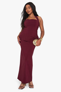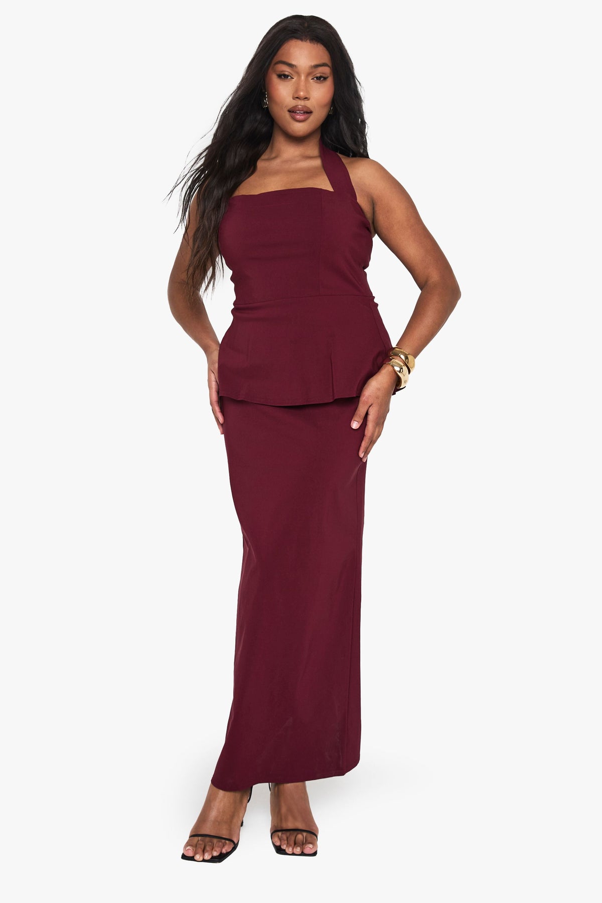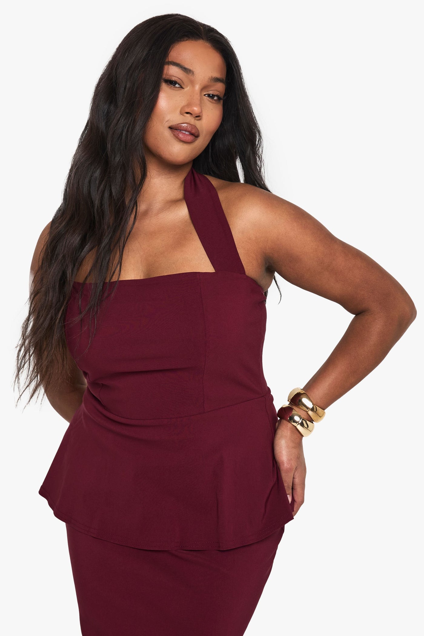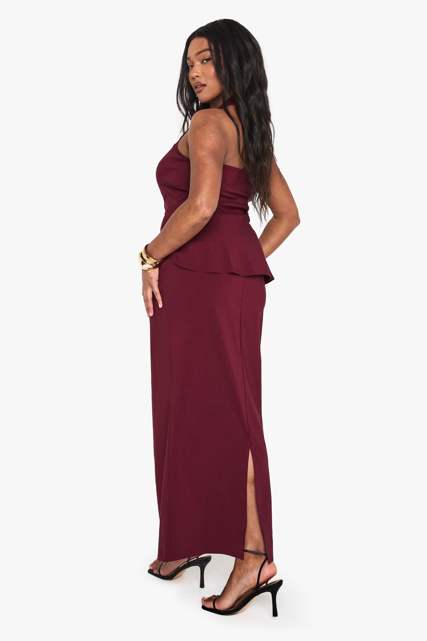 Make a statement at your next night out in this sophisticated halterneck maxi dress. The contemporary peplum detail accentuates your waist whilst the sleek column skirt creates a streamlined silhouette that's both flattering and fashion-forward. Style with strappy heels and a clutch bag as shown for cocktail evenings, or dress up with statement gold jewellery for special occasions. The versatile design transitions effortlessly from drinks with friends to more formal evening events. The structured bengaline fabric holds its shape beautifully whilst offering comfortable wear throughout the night. Perfect for the confident Boohoo woman who wants to command attention whilst maintaining an air of effortless chic. The halterneck design showcases shoulders and dcolletage for a touch of allure that's balanced by the dress's elegant length.Discover Plus Halterneck Column Tailored Maxi Dress available to buy online at us.boohoo.com. Available with quick delivery and easy return options. Shop now!Discover Plus Halterneck Column Tailored Maxi Dress available to buy online at us.boohoo.com. Available with quick delivery and easy return options. Shop now!