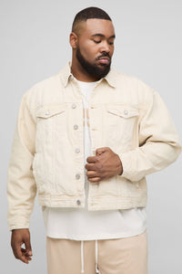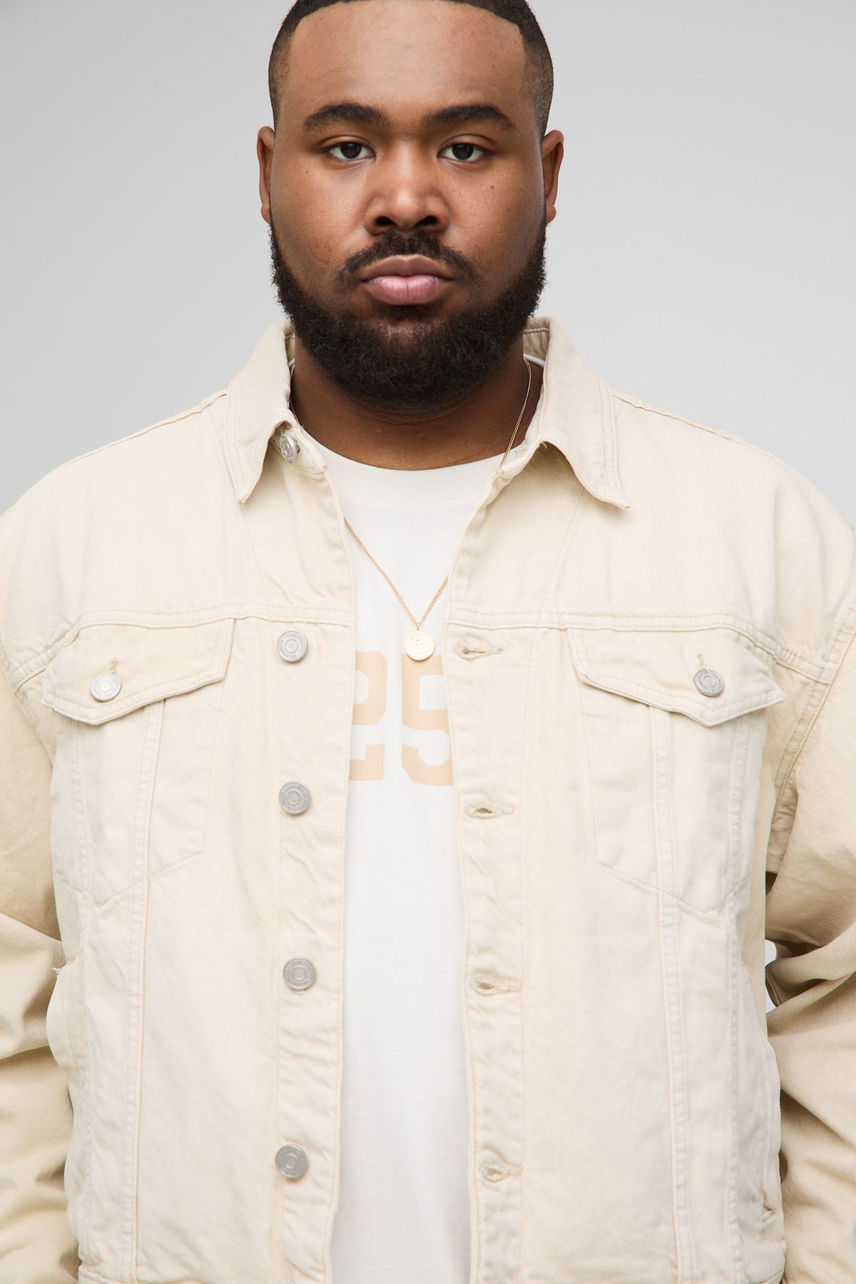 Make an instant impact with our jackets and coats for bigger guys. No winter look is complete without the right coat, but if you're a big or tall guy it needs to fit in the right places. Our range of plus size coats for men up to 5XL is cleverly designed to fit bigger frames, so you can stay warm and covered up all season. Try a boxy scuba bomber jacket to square up your frame, a trench or wool overcoat in camel or white for instant presence or a single-breasted fitted blazer to widen your shoulders and create a waistline. Or if you really want to make an impression, try a metallic nylon padded gilet with a black fitted tee and silver pendant. Style Denim JacketDesign PlainFabric CottonDetail OversizedSleeve Length Long SleeveDiscover Plus Washed Boxy Oversized Denim Jacket available to buy online at us.boohoo.com. Available with quick delivery and easy return options. Shop now!Discover Plus Washed Boxy Oversized Denim Jacket available to buy online at us.boohoo.com. Available with quick delivery and easy return options. Shop now!