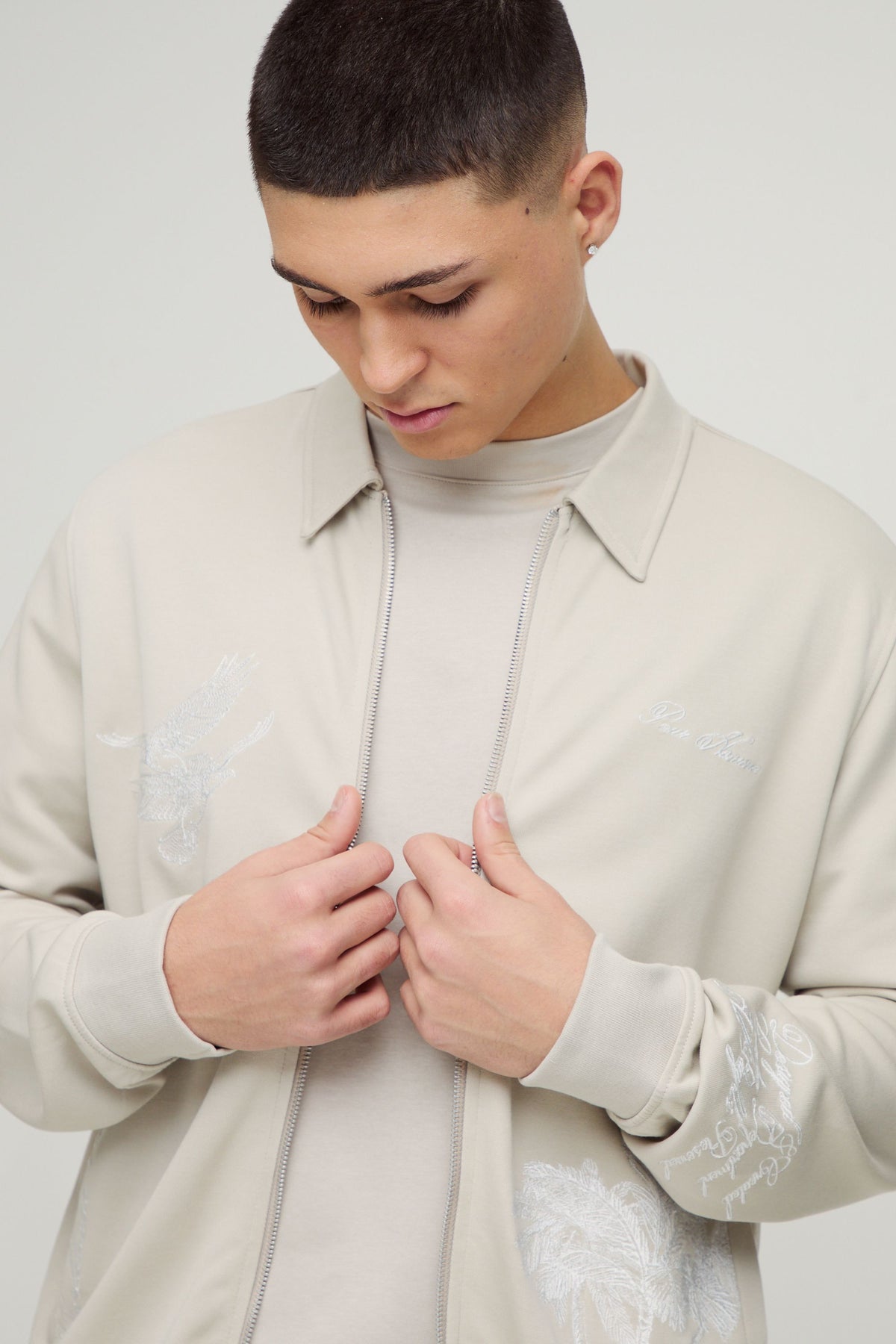 Impress your mates with a boohooMAN bomber jacket. When you need something dressy but a blazer or coat is too much, nothing says 'street cool' like a bomber jacket. Keep things slick by choosing a faux leather black jacket paired with black cargos, or match white or beige faux suede with light denim bottoms. Capture those retro vibes in an aviator or moto jacket and tapered trousers, and accessorise with chains, caps or beanies. When you're hanging with lads wear it over a hoodie to up-style contrasting layers as well as keep warm, then swap it for a smart knitted bomber for Sunday lunch at your mum's. Style Bomber JacketDesign Palm PrintFabric ScubaDetail EmbroideredLength RegularNeckline Bomber NeckSleeve Length Long SleeveDiscover Regular Fit Smart Harrington Bonded Scuba Super Heavyweight Embroidered Bomber Jacket available to buy online at us.boohoo.com. Available with quick delivery and easy return options. Shop now!Discover Regular Fit Smart Harrington Bonded Scuba Super Heavyweight Embroidered Bomber Jacket available to buy online at us.boohoo.com. Available with quick delivery and easy return options. Shop now!