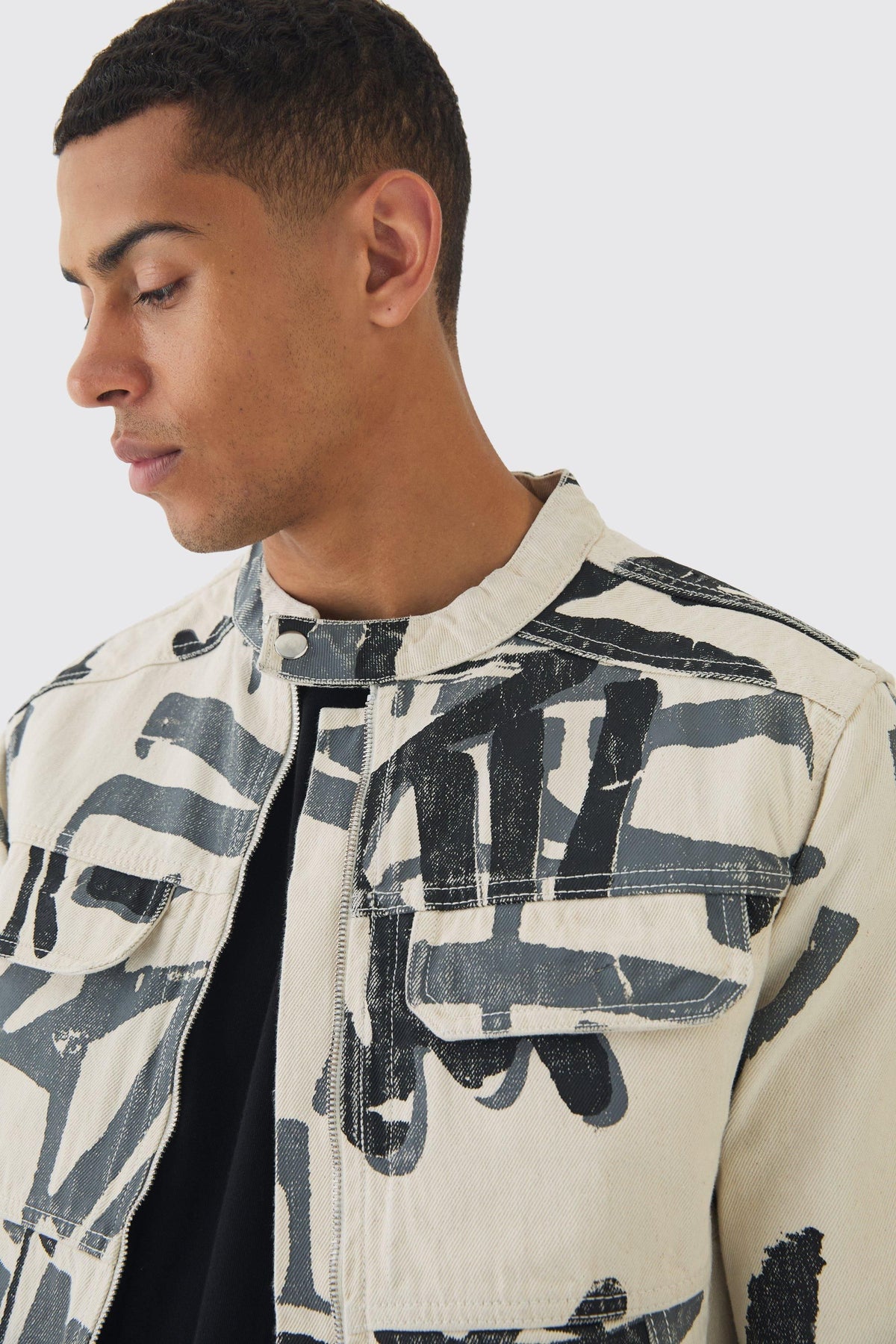 No matter where the day takes you, you can always rely on a denim jacket. For those long awaited sunny days, nothing works better than a denim jackets. Lightweight and easy to match with any casual outfit, this staple is the go-to outerwear piece by definition. Available in endless colour tones, washes and finishes, the jean jackets from our improved collection are a fail-safe choice for a fashionable and comfortable getup. Consider pairing your denim jacket with a white t-shirt, cargo trousers and smart trainers for an instant cool ensemble. And when the nights get colder, make sure you're lined up with a borg, suede and faux fur.Style Detail Denim JacketDesign All Over PrintFabric DenimLength CroppedNeckline CollarlessSleeve Length Long SleeveDiscover Slim Boxy Denim Graffiti Laser Print Biker Jacket available to buy online at us.boohoo.com. Available with quick delivery and easy return options. Shop now!Discover Slim Boxy Denim Graffiti Laser Print Biker Jacket available to buy online at us.boohoo.com. Available with quick delivery and easy return options. Shop now!