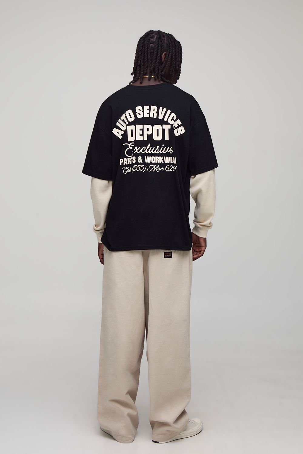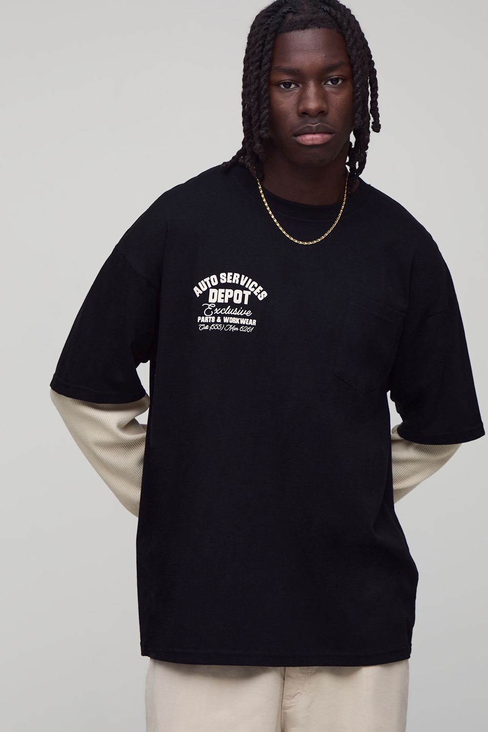 Oversized Faux Layer Waffle Long Sleeve T-Shirt