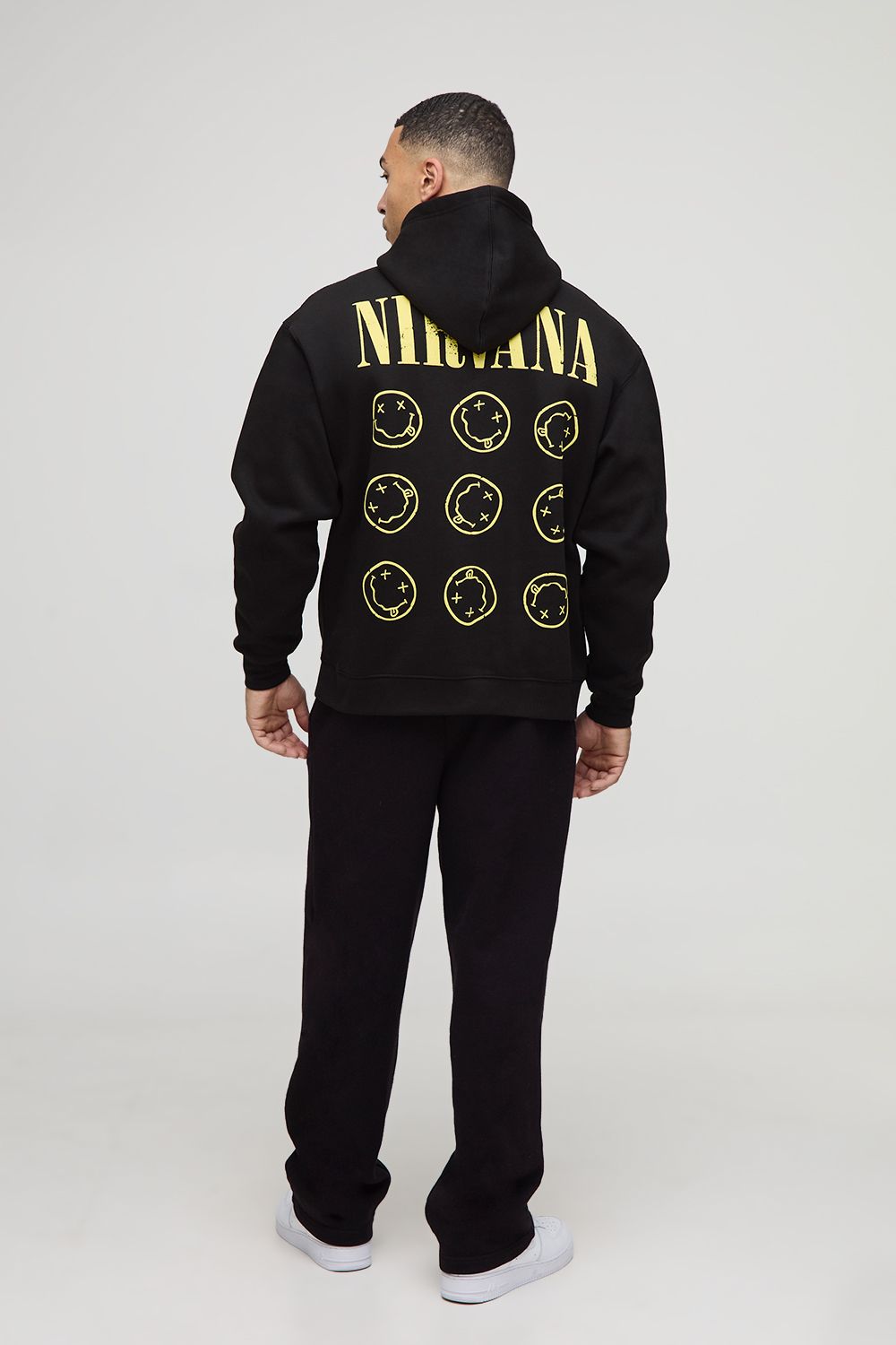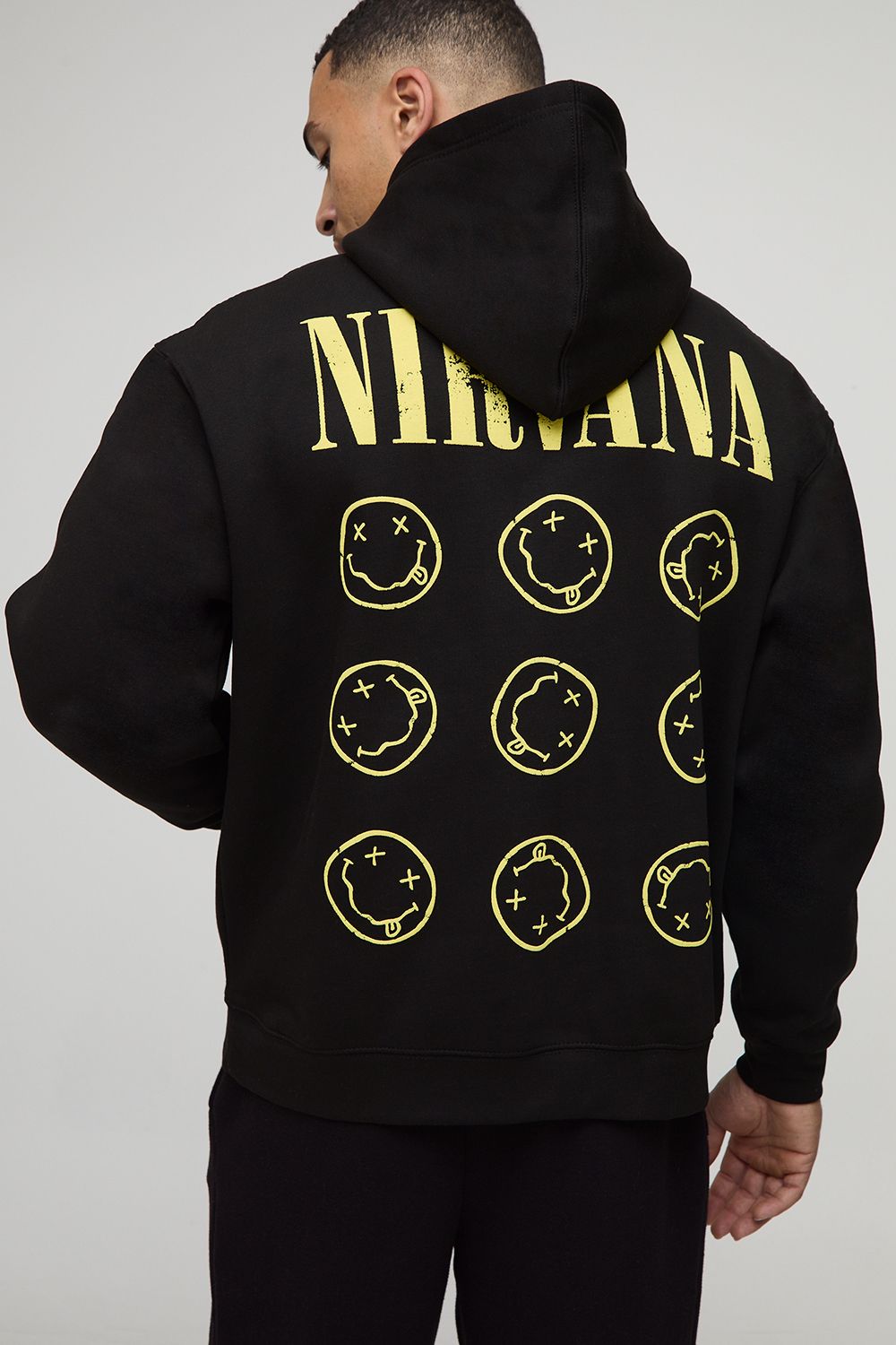 Black Oversized Boxy Nirvana Puff Print License Printed Hoodie