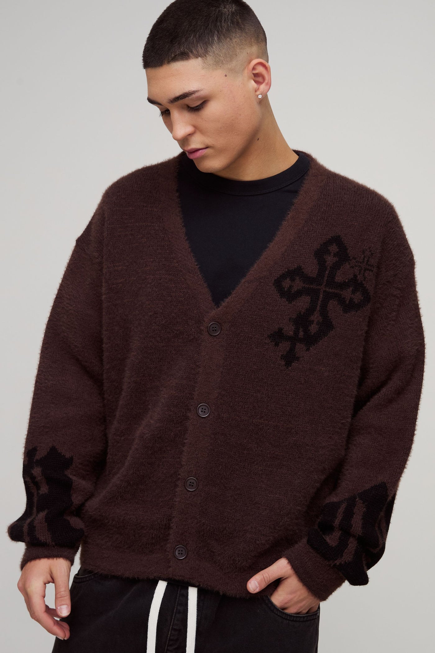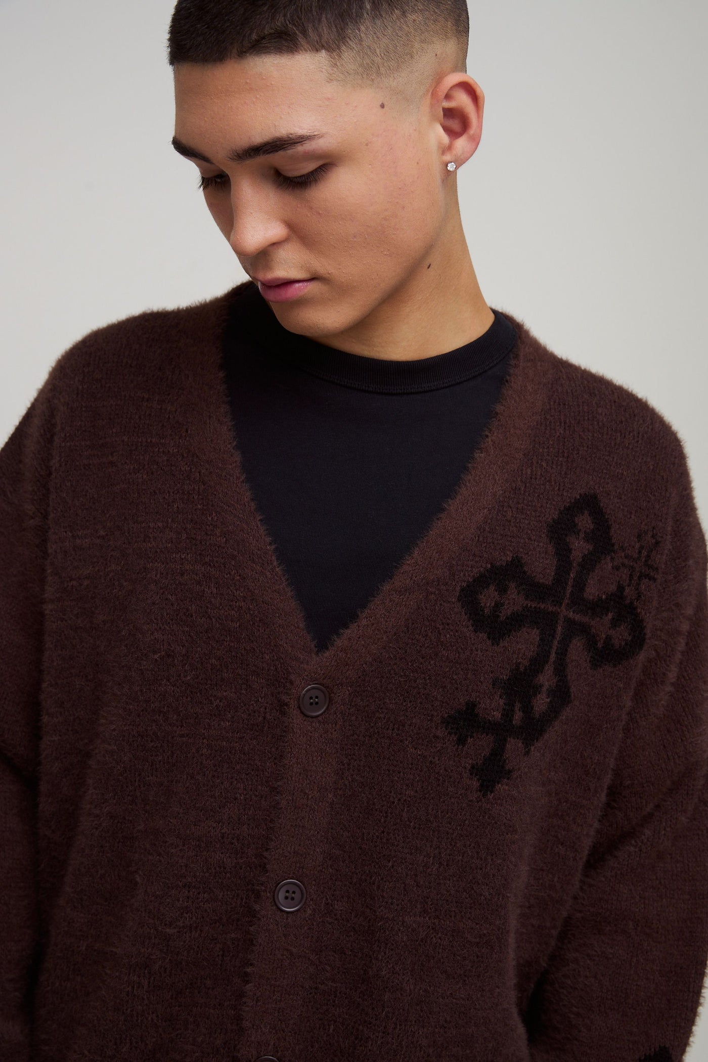 For comfort dressing with a fashion twist choose a cardigan. A modern gent's fashion inventory should always include a nice cardigan. This menswear essential is a cool alternative to the more popular crew-neck jumper and can be easily dressed up when the setting requires so. Try wearing it over a smart shirt and match it with chinos for the ultimate preppy getup. For an outfit that is more on the smart side, consider pairing your cardi with a white t-shirt and cropped trousers. Finish off with boots or brogues to add an element of class to the equation.Style CardiganDesign FluffyFabric AcrylicLength CroppedNeckline V NeckSleeve Length Long SleeveDiscover Boxy Fluffy Crosses Knitted Cardigan available to buy online at us.boohoo.com. Available with quick delivery and easy return options. Shop now!Discover Boxy Fluffy Crosses Knitted Cardigan available to buy online at us.boohoo.com. Available with quick delivery and easy return options. Shop now!