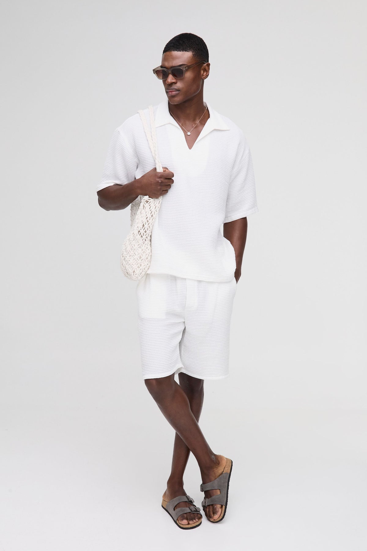 Bring the summer party vibes with colourful shirt and short sets. Did someone say garden party? Make an entrance and turn heads with a bold printed shirt and shorts set matched with a bucket hat and statement sunnies, perfect for your mates back patio or the beachside bar on your summer getaway. Prefer to blend in? How about a soft grey or beige with a white tee and loafers, or khaki over a black tee and a dog tag pendant. Whatever your vibe, we've got you covered from the beach to the bars - and when summer's over, swap the shorts for jeans or cargo pants or layer up with a contrasting bomber jacket - presto!Style Shirt & Shorts SetDesign Fabric InterestFabric WaffleDetail Waffle KnitNeckline V NeckSleeve Length Short SleeveDiscover Overhead V-Neck Waffle Shirt & Short Set available to buy online at us.boohoo.com. Available with quick delivery and easy return options. Shop now!Discover Overhead V-Neck Waffle Shirt & Short Set available to buy online at us.boohoo.com. Available with quick delivery and easy return options. Shop now!