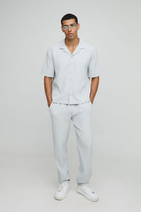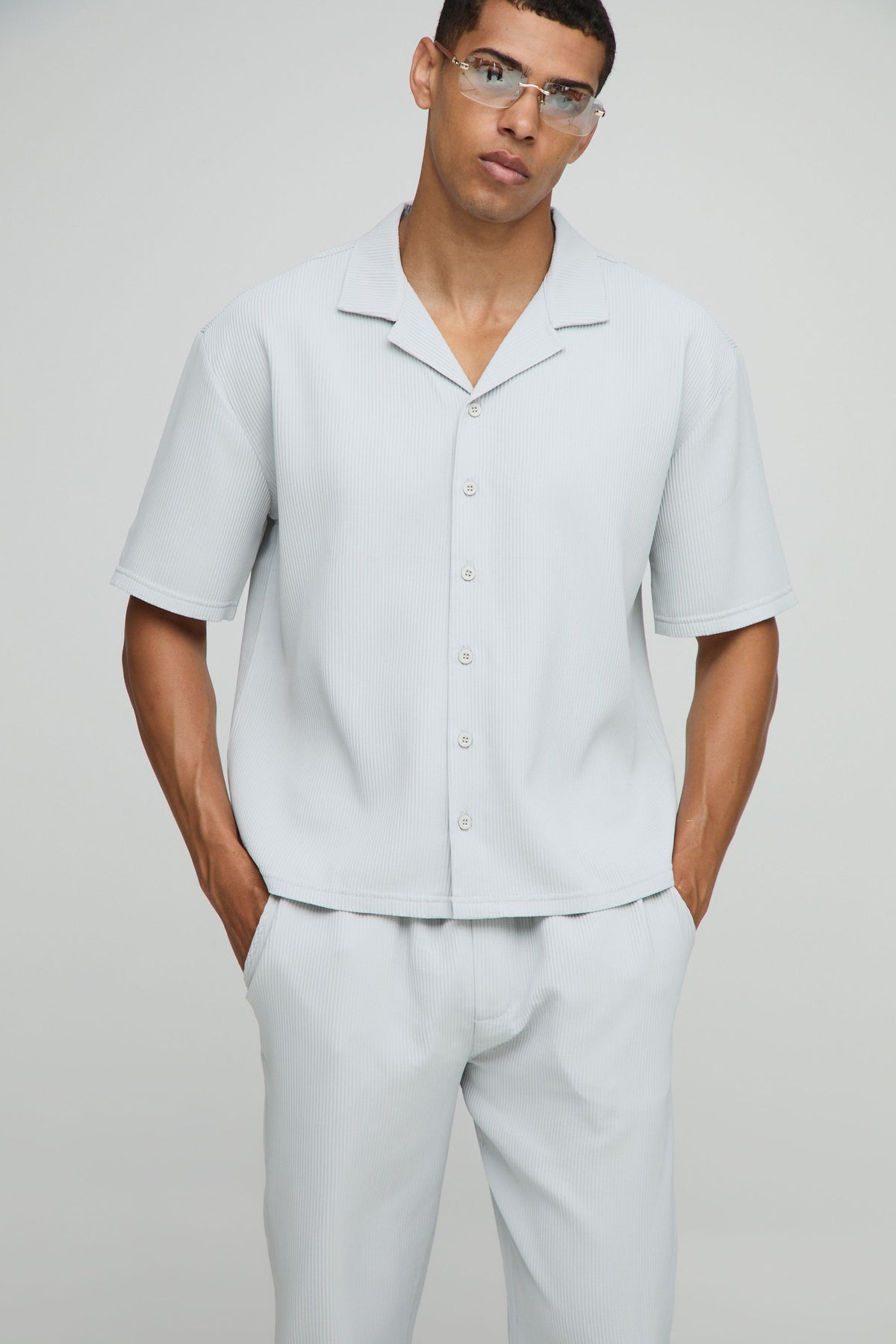 Pleated sets for a touch of texture and style. pleated sets add a unique twist to your wardrobe, ensuring you stand out from the crowd. These matching tops and bottoms offer a modern, structured look that's perfect for stepping up your style game. Whether you're dressing for a casual day out or a more sophisticated evening event, pleated sets give you a bold yet effortless look. Pair with trainers for a relaxed vibe or dress them up with loafers and a tailored jacket for a more polished appearance. These sets are not just a trend but a versatile addition to any wardrobe, keeping you looking sharp and feeling comfortable all day long.Style Shirt & Trousers SetDesign Fabric InterestFabric PlisseDetail PlainNeckline RevereSleeve Length Short SleeveDiscover Oversized Short Sleeve Pleated Shirt & Straight Trouser available to buy online at us.boohoo.com. Available with quick delivery and easy return options. Shop now!Discover Oversized Short Sleeve Pleated Shirt & Straight Trouser available to buy online at us.boohoo.com. Available with quick delivery and easy return options. Shop now!