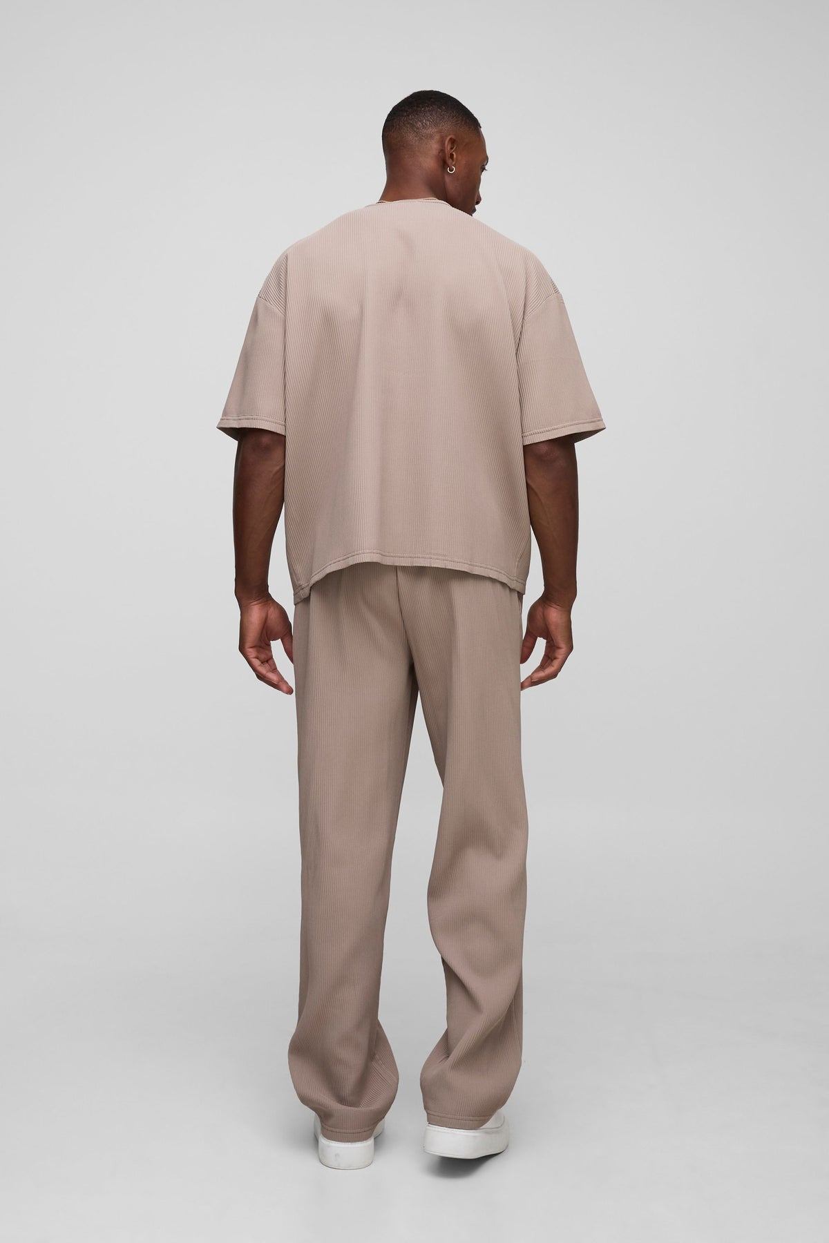 Pleated sets for a touch of texture and style. pleated sets add a unique twist to your wardrobe, ensuring you stand out from the crowd. These matching tops and bottoms offer a modern, structured look that's perfect for stepping up your style game. Whether you're dressing for a casual day out or a more sophisticated evening event, pleated sets give you a bold yet effortless look. Pair with trainers for a relaxed vibe or dress them up with loafers and a tailored jacket for a more polished appearance. These sets are not just a trend but a versatile addition to any wardrobe, keeping you looking sharp and feeling comfortable all day long.Style Shirt & Trousers SetDesign Fabric InterestFabric PlisseDetail PlainNeckline CrewSleeve Length Short SleeveDiscover Pleated Oversized Boxy T-shirt & Trouser Set available to buy online at us.boohoo.com. Available with quick delivery and easy return options. Shop now!Discover Pleated Oversized Boxy T-shirt & Trouser Set available to buy online at us.boohoo.com. Available with quick delivery and easy return options. Shop now!