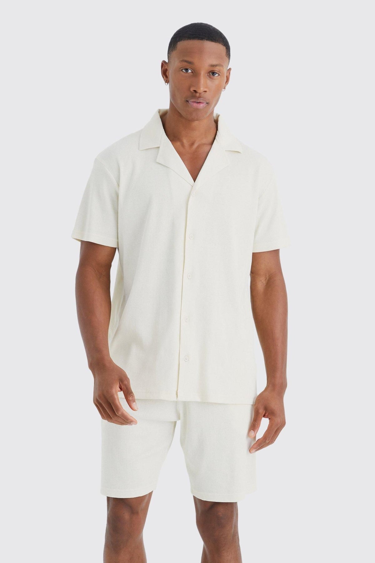 Bring the summer party vibes with colourful shirt and short sets. Did someone say garden party? Make an entrance and turn heads with a bold printed shirt and shorts set matched with a bucket hat and statement sunnies, perfect for your mates back patio or the beachside bar on your summer getaway. Prefer to blend in? How about a soft grey or beige with a white tee and loafers, or khaki over a black tee and a dog tag pendant. Whatever your vibe, we've got you covered from the beach to the bars - and when summer's over, swap the shorts for jeans or cargo pants or layer up with a contrasting bomber jacket - presto!Style Shirt & Shorts SetDesign Fabric InterestFabric RibDetail TexturedNeckline RevereFit RegularSleeve Length Short SleeveDiscover Short Sleeve Rib Regular Fit Shirt And Short Set available to buy online at us.boohoo.com. Available with quick delivery and easy return options. Shop now!Discover Short Sleeve Rib Regular Fit Shirt And Short Set available to buy online at us.boohoo.com. Available with quick delivery and easy return options. Shop now!