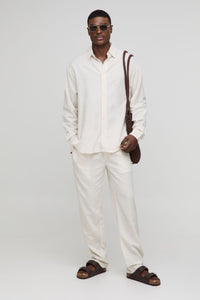 Bring the summer party vibes with colourful shirt and short sets. Did someone say garden party? Make an entrance and turn heads with a bold printed shirt and shorts set matched with a bucket hat and statement sunnies, perfect for your mates back patio or the beachside bar on your summer getaway. Prefer to blend in? How about a soft grey or beige with a white tee and loafers, or khaki over a black tee and a dog tag pendant. Whatever your vibe, we've got you covered from the beach to the bars - and when summer's over, swap the shorts for jeans or cargo pants or layer up with a contrasting bomber jacket - presto!Style Shirt & Trousers SetDesign Fabric InterestFabric LinenDetail PlainNeckline V NeckSleeve Length Short SleeveDiscover Super Oversized Linen Blend Shirt & Relaxed Trouser Set available to buy online at us.boohoo.com. Available with quick delivery and easy return options. Shop now!Discover Super Oversized Linen Blend Shirt & Relaxed Trouser Set available to buy online at us.boohoo.com. Available with quick delivery and easy return options. Shop now!