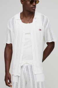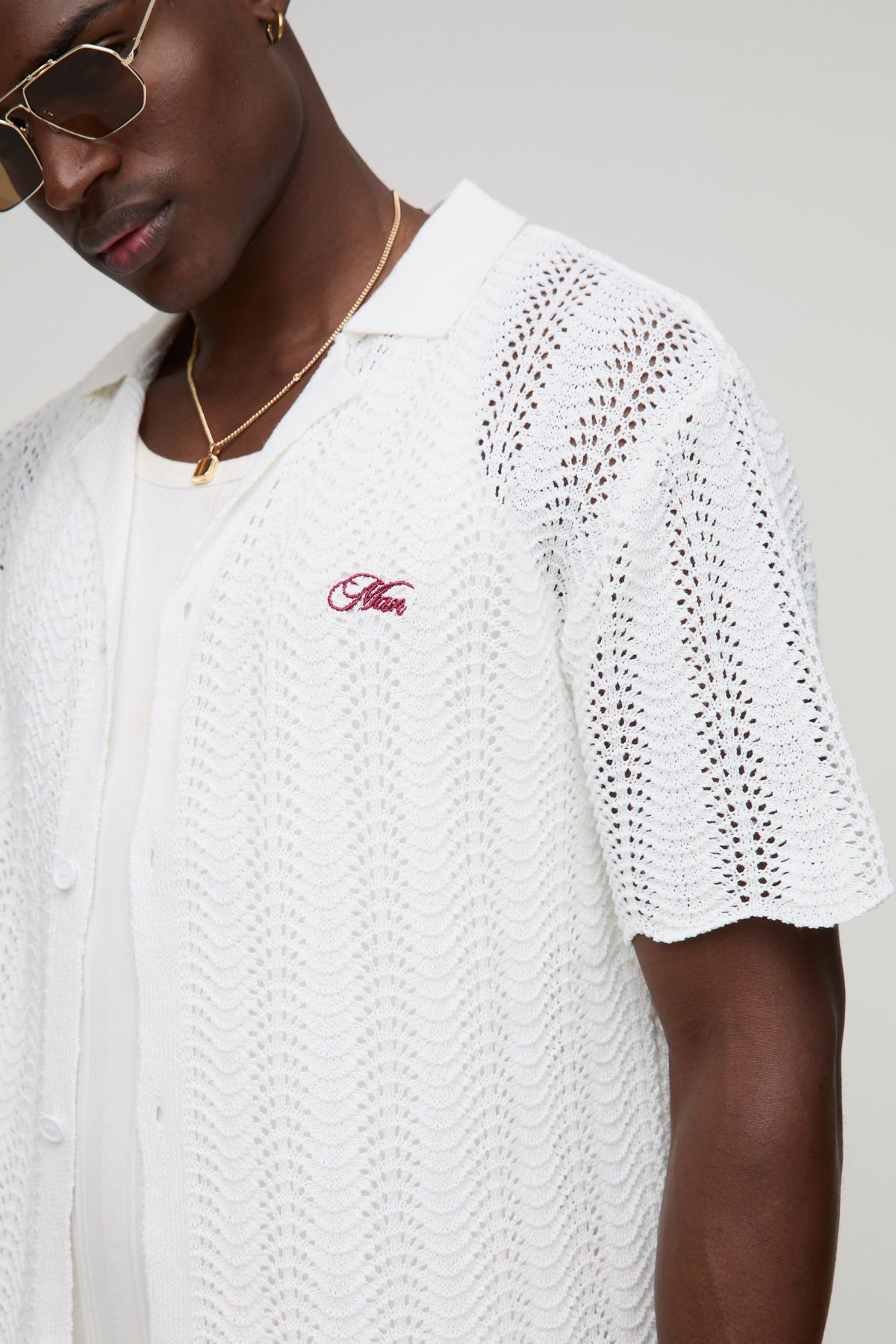 MAN Relaxed Embroidered Wavy Crochet Knitted Shirt