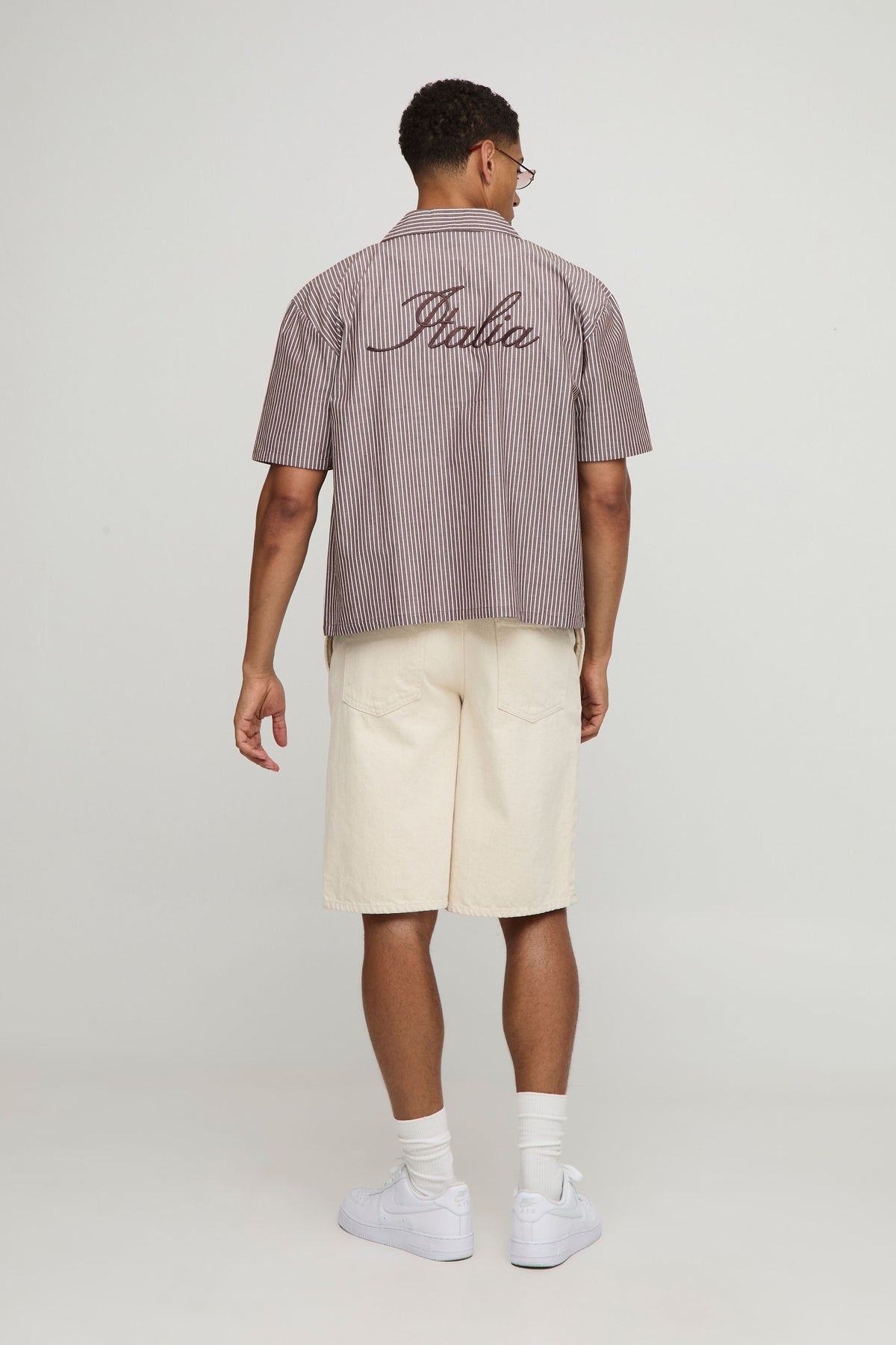 From minimalist to maximum impact, we have shirts for every occasion. Fuse comfort and casual with an oversized shirt that shows you have style as well as a sense of space. With plenty of room to move or add extra layers, our shirts make you look built, not bulky. Perfect with a pair of trousers for a day at the office, or wear loose with jeans for a made-it-look-easy weekend 'fit. To take things up a notch, choose a fun pattern like check or lace and wear it with a blazer, skinny jeans and brogues, or go your own way by wearing a long-sleeved knit in place of a jacket over a neutral plus-sized tee.Style Short Sleeve Stripe ShirtDesign StripesFabric CottonDetail EmbroideredLength RegularNeckline RevereSleeve Length Short SleeveDiscover Oversized Boxy Stripe Italia Embroidered Revere Shirt available to buy online at us.boohoo.com. Available with quick delivery and easy return options. Shop now!Discover Oversized Boxy Stripe Italia Embroidered Revere Shirt available to buy online at us.boohoo.com. Available with quick delivery and easy return options. Shop now!