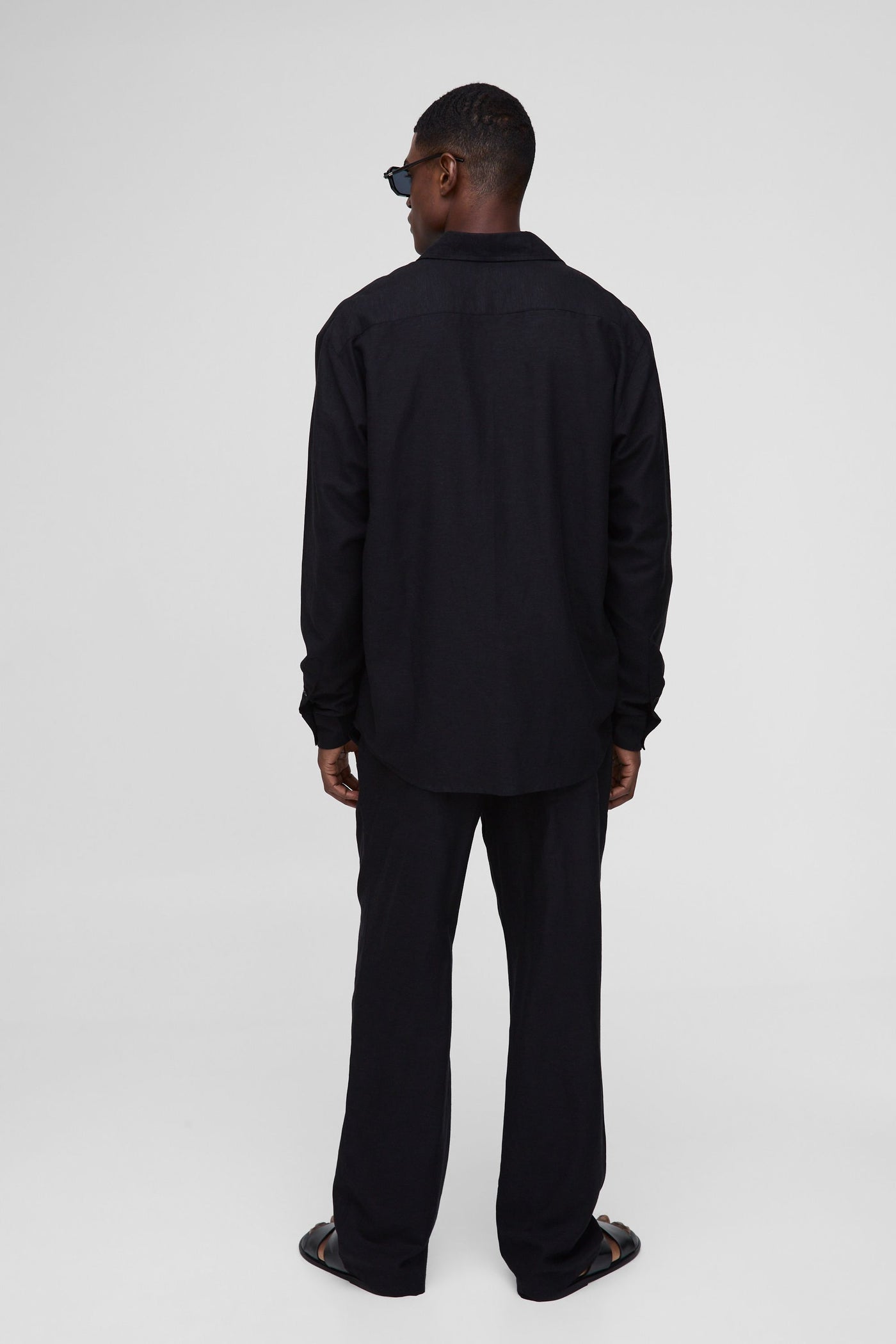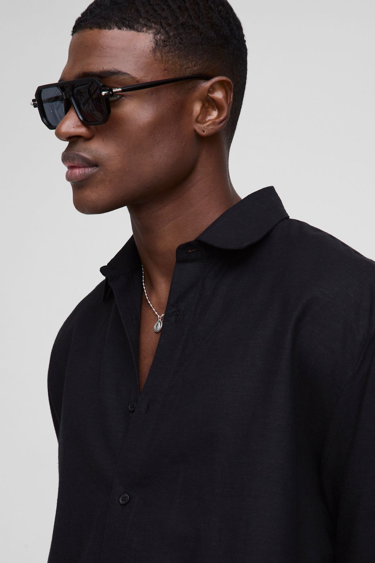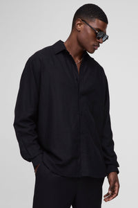 Oversized Long Sleeve Collared Linen Blend Shirt