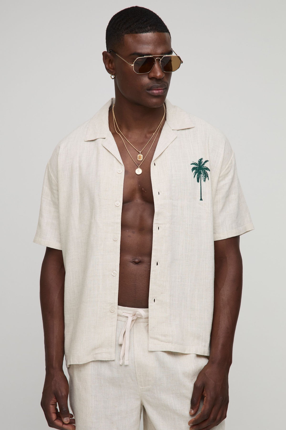 From minimalist to maximum impact, we have shirts for every occasion. Fuse comfort and casual with an oversized shirt that shows you have style as well as a sense of space. With plenty of room to move or add extra layers, our shirts make you look built, not bulky. Perfect with a pair of trousers for a day at the office, or wear loose with jeans for a made-it-look-easy weekend 'fit. To take things up a notch, choose a fun pattern like check or lace and wear it with a blazer, skinny jeans and brogues, or go your own way by wearing a long-sleeved knit in place of a jacket over a neutral plus-sized tee.Style Printed ShirtDesign Palm PrintFabric LinenDetail OversizedLength RegularNeckline RevereSleeve Length Short SleeveDiscover Oversized Revere Heavyweight Linen Palm Tree Printed Shirt available to buy online at us.boohoo.com. Available with quick delivery and easy return options. Shop now!Discover Oversized Revere Heavyweight Linen Palm Tree Printed Shirt available to buy online at us.boohoo.com. Available with quick delivery and easy return options. Shop now!