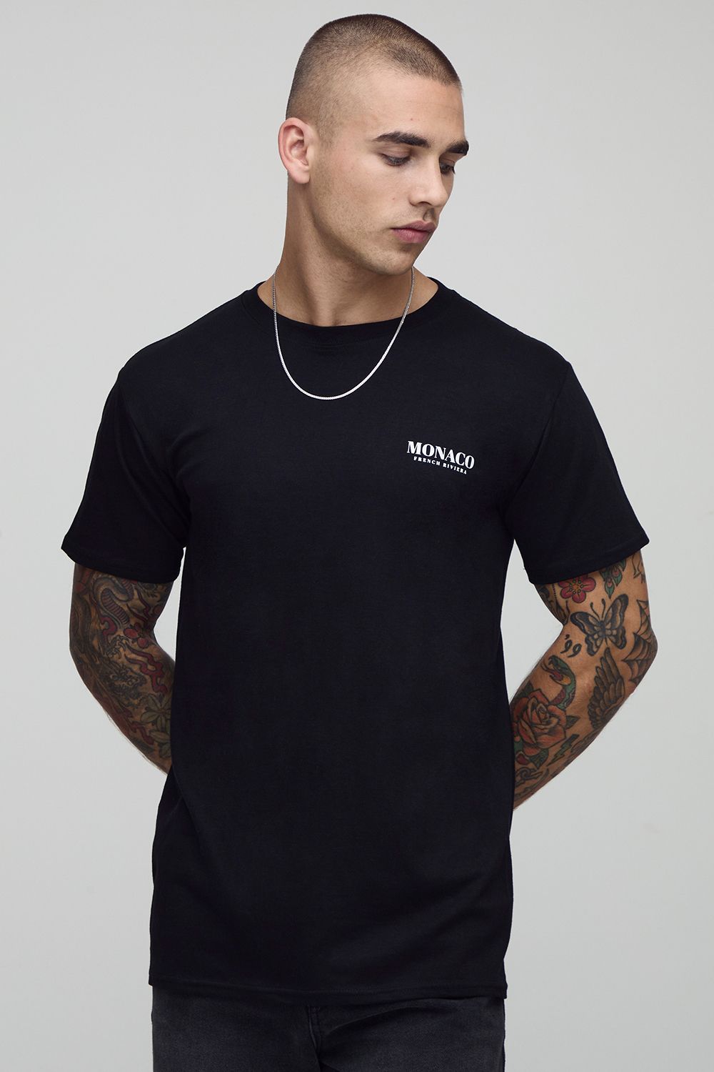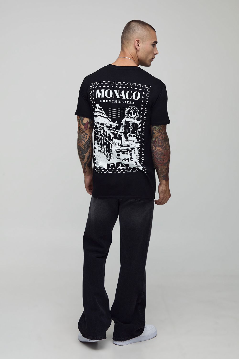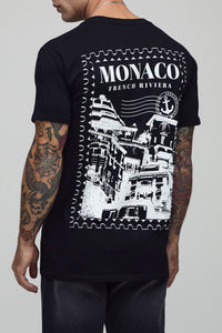 Black Regular Fit Monaco Stencil Printed T-Shirt
