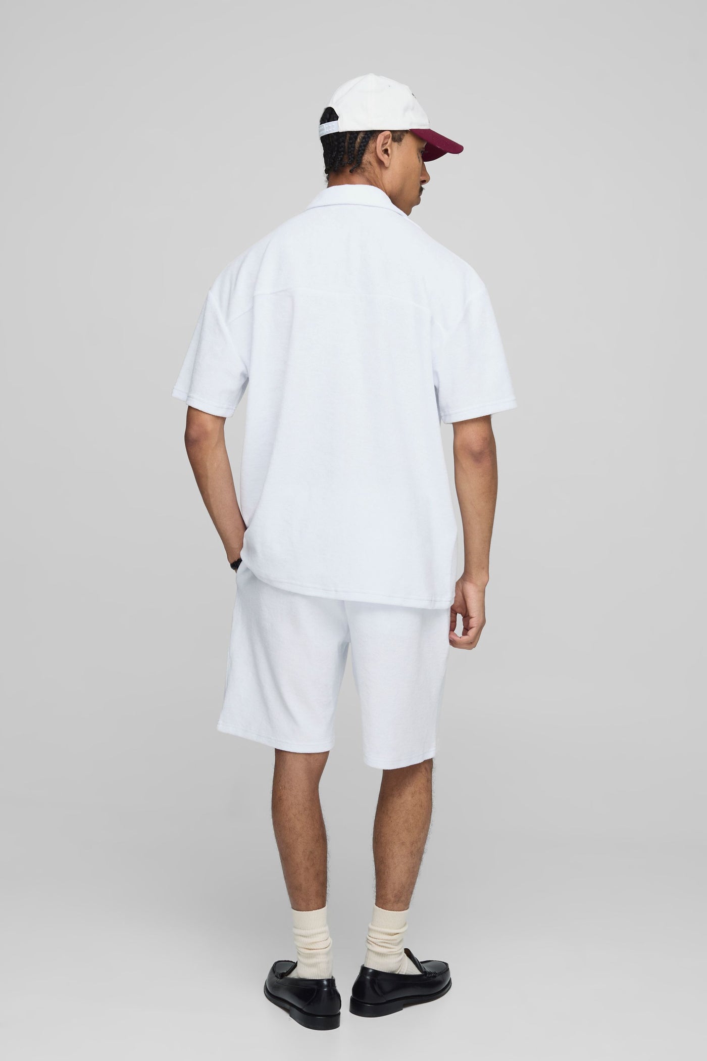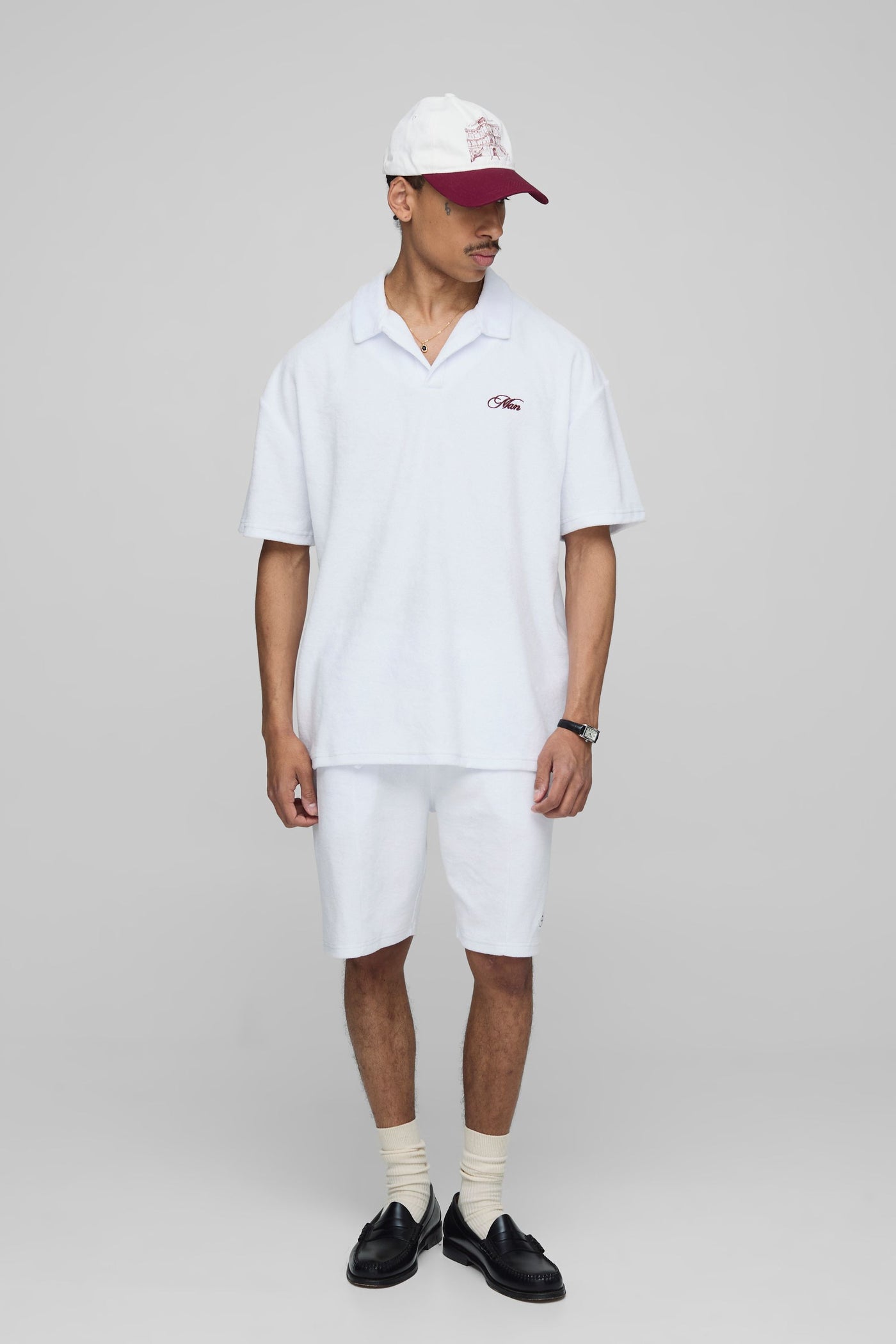 Own your summer style with short tracksuits from boohooMAN. Time to let your personality come out with men's short tracksuits for all occasions. Mix and match tops and shorts in all styles and fabrics, lengths and colours. Choose a tee, polo or vest then play it cool in plain white or beige, or be flamboyant with neon, velour or open stitch. We have sweatshirts sets perfect for the gym, comfy towelling for lounging by the pool, and statement prints for turning heads at any summer soiree. Want to look glam? Go for block colours with contrasting stitch and chunky chains. Want to break the rules? How about bright pink with statement sunnies. With a short tracksuit or two, you'll be cool no matter how you chill.Style Polo & Shorts SetDesign PlainFabric TowellingDetail EmbroideredLength RegularNeckline RevereSleeve Length Short SleeveDiscover White Oversized Embroidered Towelling Revere Polo & Short Set available to buy online at us.boohoo.com. Available with quick delivery and easy return options. Shop now!Discover White Oversized Embroidered Towelling Revere Polo & Short Set available to buy online at us.boohoo.com. Available with quick delivery and easy return options. Shop now!