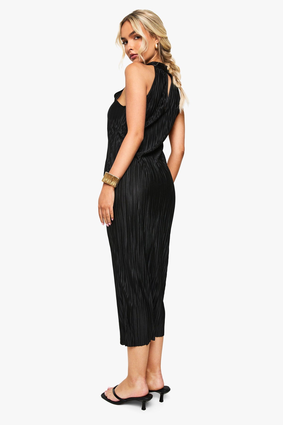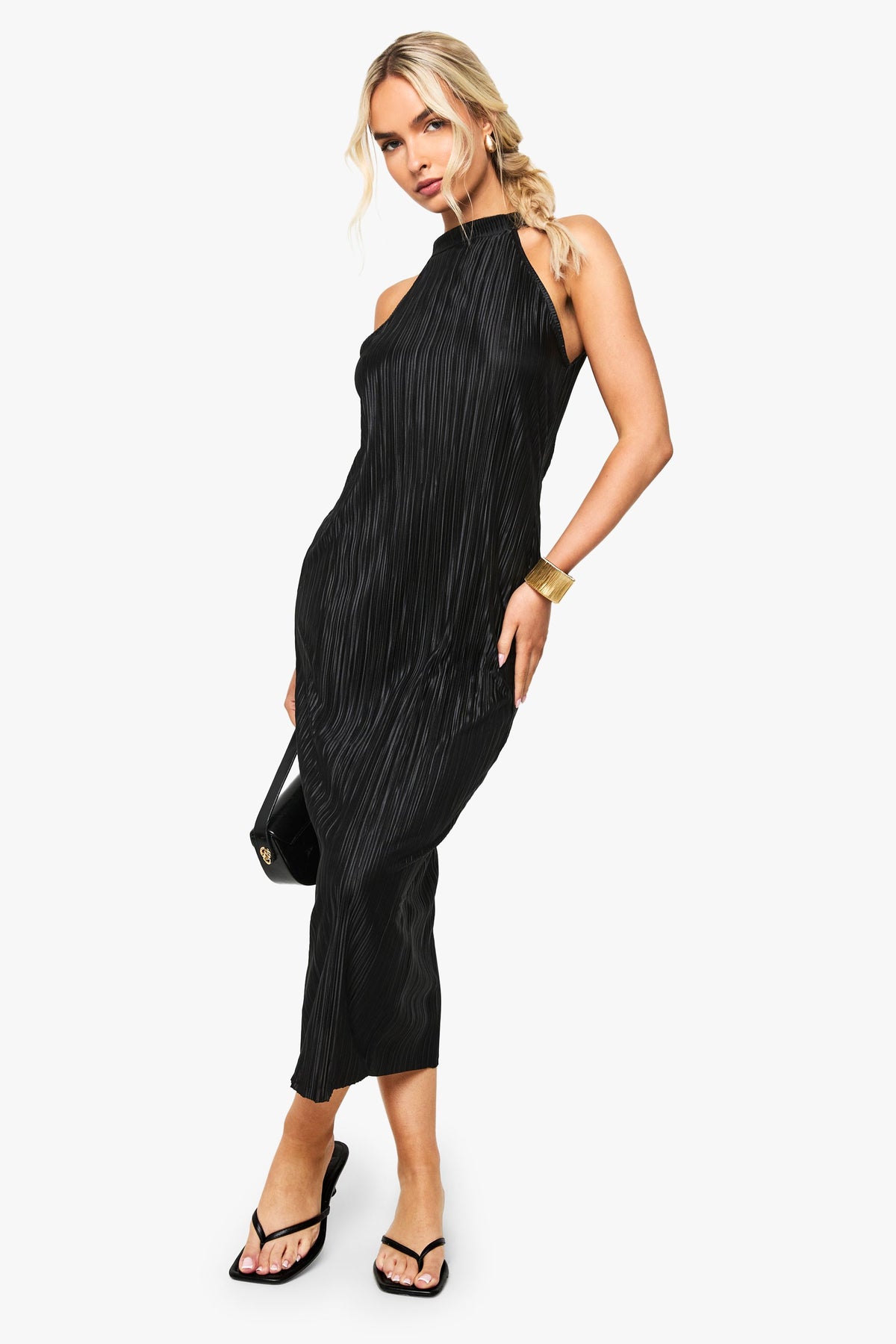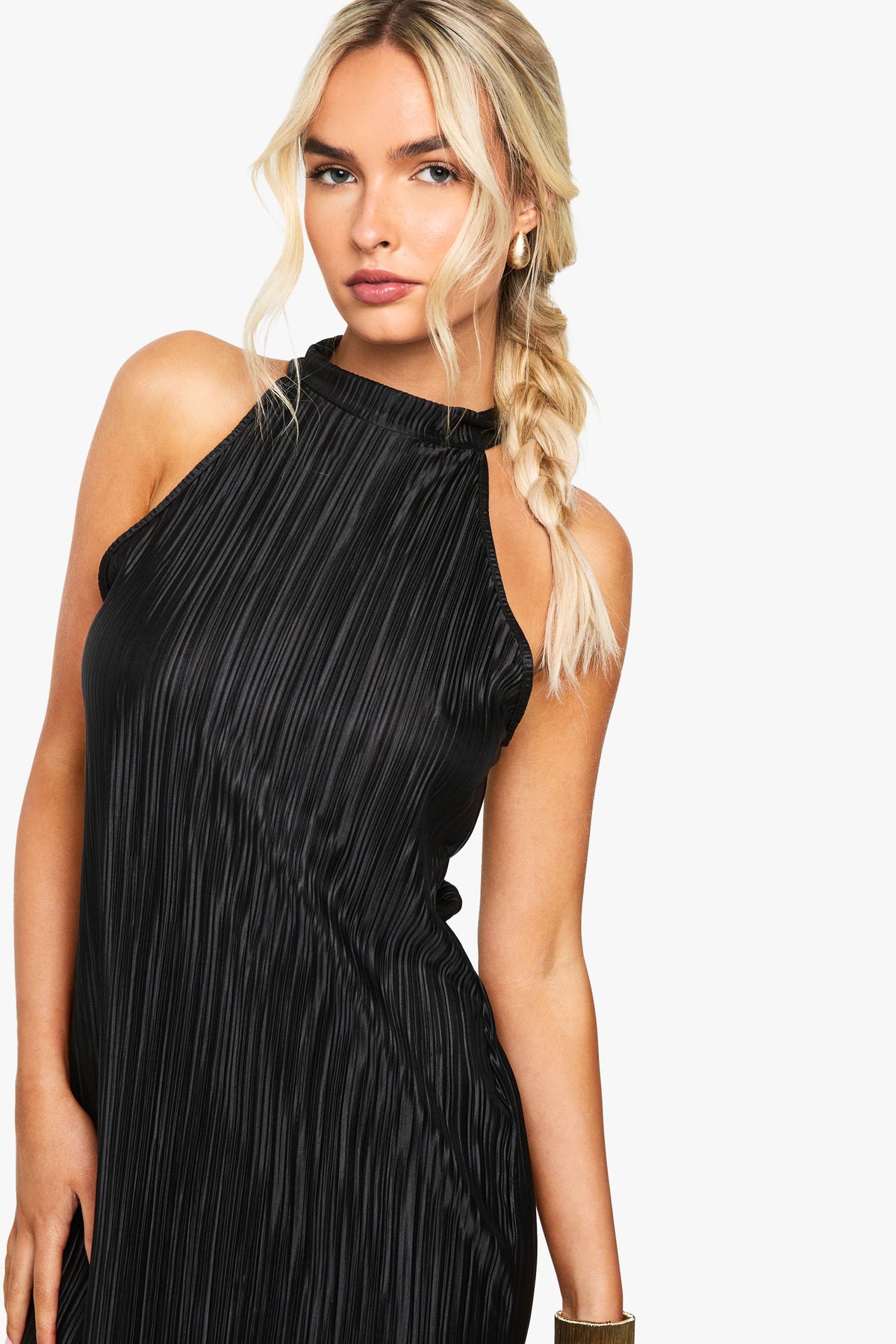 Make a statement in this captivating plisse halterneck midi dress from Boohoo. The distinctive textured fabric creates a mesmerising effect as you move, whilst the sophisticated halterneck design frames your dcolletage beautifully. Style with strappy heels and a clutch bag for an evening of cocktails with the girls, or dress down with minimal flip flops for a more relaxed yet chic look. The midi length offers the perfect balance between allure and elegance, making it ideal for everything from rooftop bars to exclusive club nights. Add statement gold jewellery to enhance the dress's sleek silhouette, or keep accessories minimal to let this showstopping piece command attention. This dress embodies contemporary glamour that's ready for wherever the night takes you.Discover Plisse Halterneck Midi Dress available to buy online at us.boohoo.com. Available with quick delivery and easy return options. Shop now!Discover Plisse Halterneck Midi Dress available to buy online at us.boohoo.com. Available with quick delivery and easy return options. Shop now!