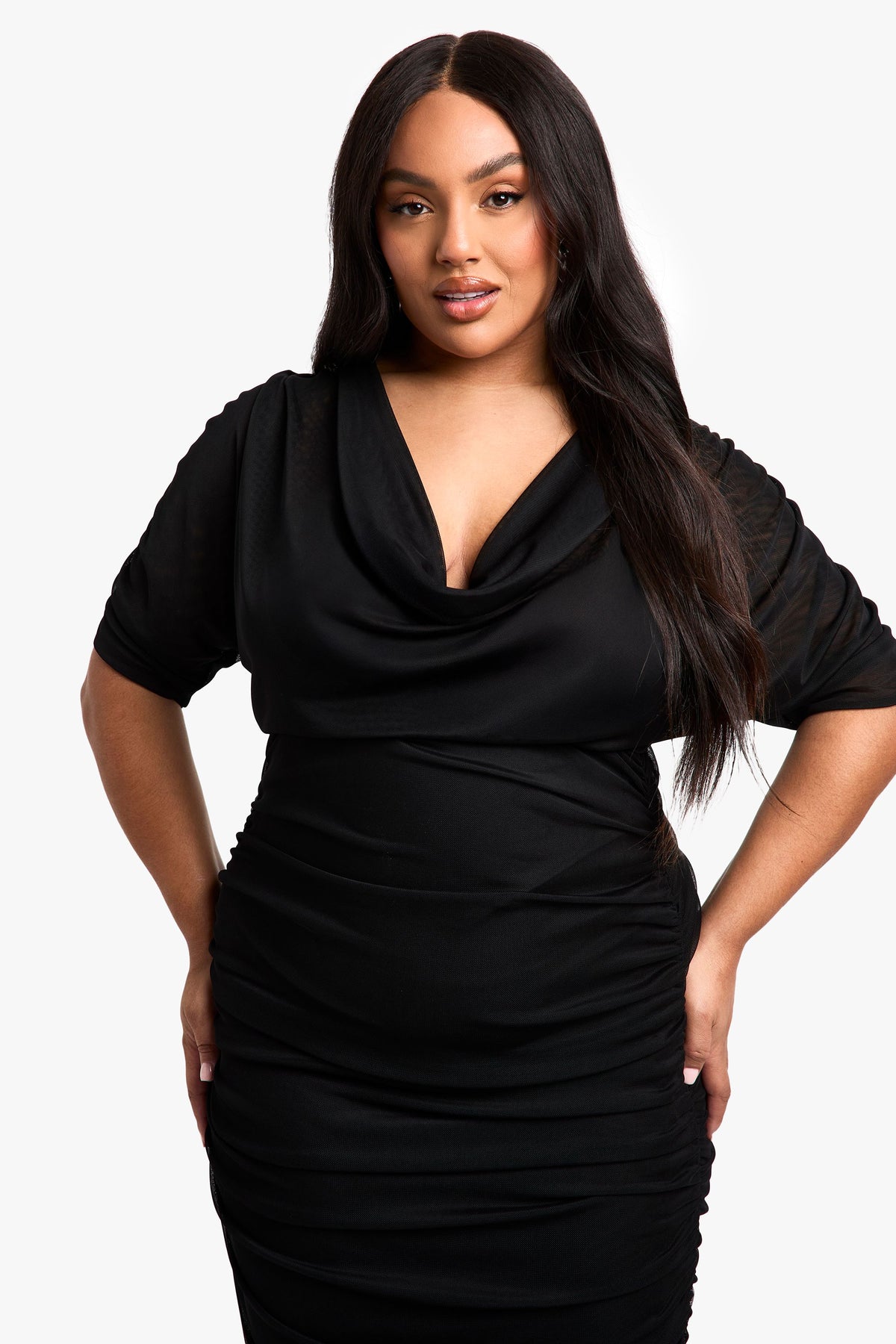 Make a statement in this alluring plus-size midi dress that's perfect for your next night out. The ruched detailing creates a flattering silhouette, while the cowl neckline adds a touch of elegance. Pair it with strappy heels and a clutch bag for a chic ensemble that's ready for cocktails or dancing. The versatile midi length allows for easy transition from day to night, making it ideal for after-work drinks or weekend celebrations. Accessorise with bold earrings and a sleek updo to showcase the neckline. Whether you're heading to a trendy bar or meeting friends for a special occasion, this dress will ensure you stand out for all the right reasons.Discover Plus Cowl Neck Ruched Midaxi Dress available to buy online at us.boohoo.com. Available with quick delivery and easy return options. Shop now!Discover Plus Cowl Neck Ruched Midaxi Dress available to buy online at us.boohoo.com. Available with quick delivery and easy return options. Shop now!
