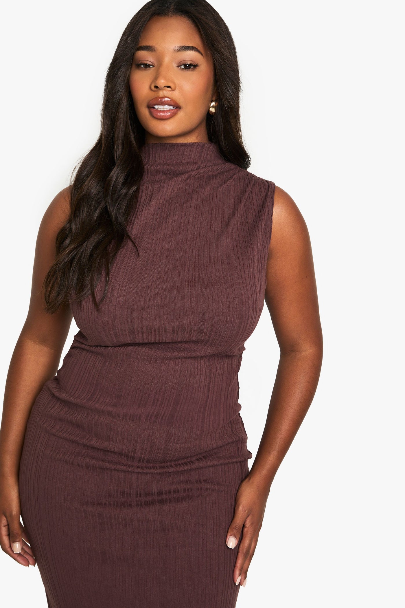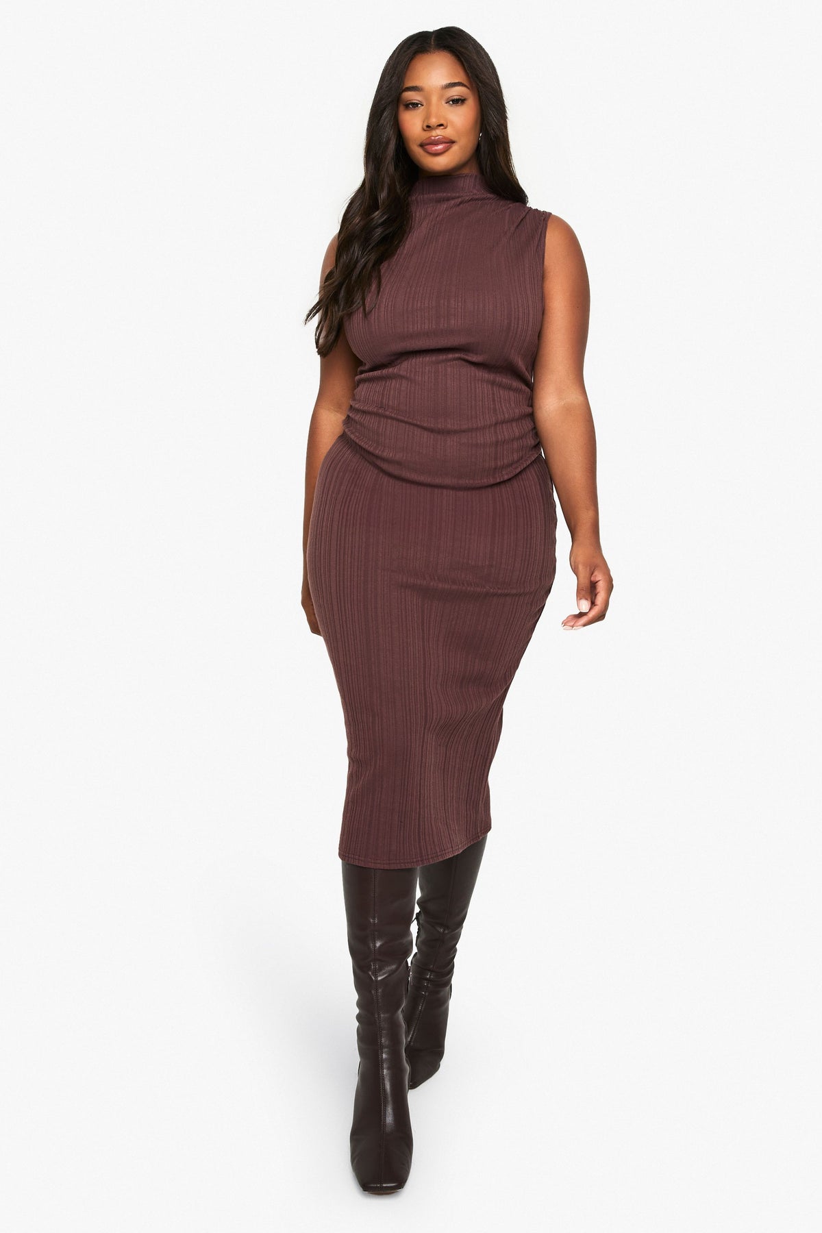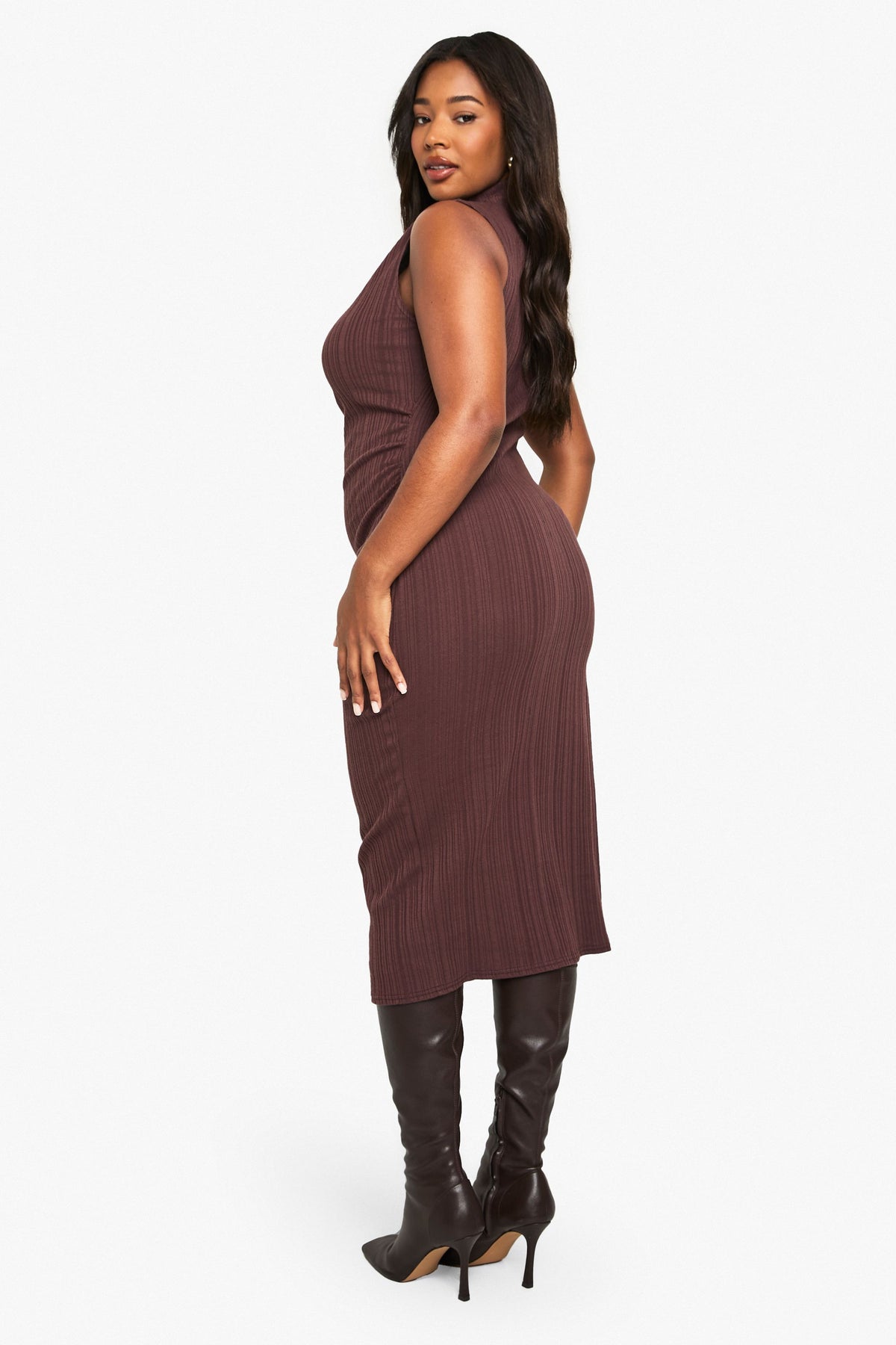 Embrace your curves with this stunning sleeveless midi dress from Boohoo. The high neck and form-fitting silhouette create a chic, contemporary look that's both flattering and comfortable. Perfect for casual outings or family gatherings, this dress can be easily dressed up or down. Pair it with knee-high boots for a trendy autumn ensemble, or layer it under a chunky cardigan for added warmth. The ribbed fabric adds texture and interest, while the midi length allows for effortless movement. Accessorise with statement earrings and a clutch bag for evening drinks, or keep it casual with trainers and a denim jacket for daytime errands. This versatile piece is a must-have addition to any fashion-forward wardrobe, offering endless styling possibilities for the confident, modern woman.Discover PLUS SLEEVELESS HIGH NECK MIDI DRESS available to buy online at us.boohoo.com. Available with quick delivery and easy return options. Shop now!Discover PLUS SLEEVELESS HIGH NECK MIDI DRESS available to buy online at us.boohoo.com. Available with quick delivery and easy return options. Shop now!