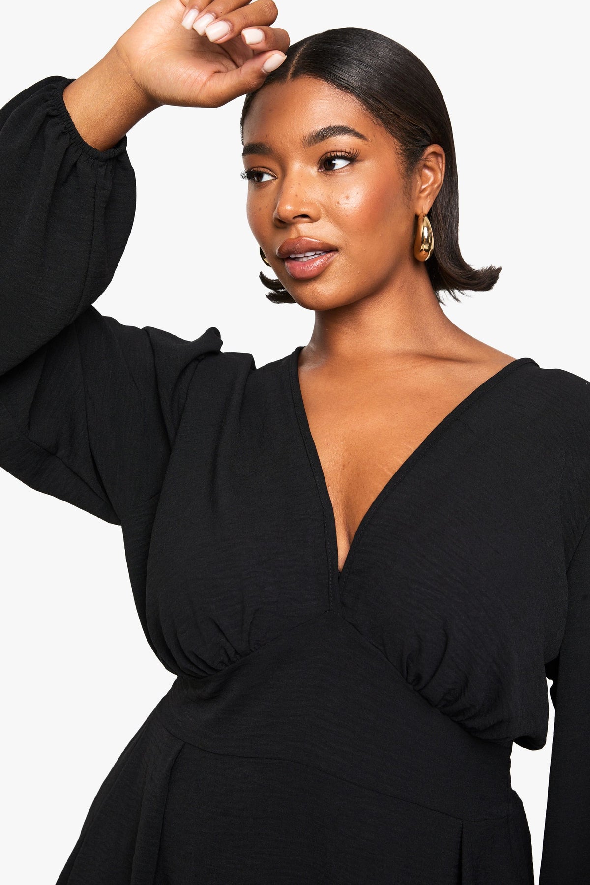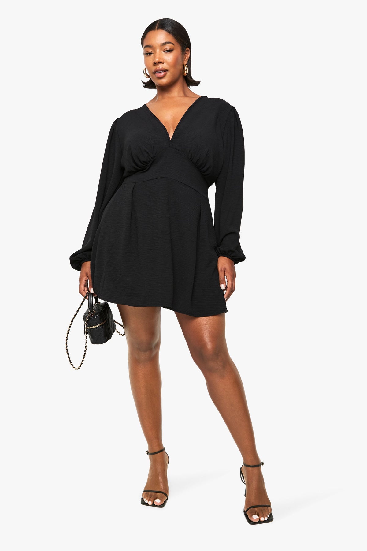 Make an entrance in this captivating plus size skater dress from Boohoo. The sophisticated A-line silhouette skims your curves beautifully while the plunging V-neckline adds a touch of allure. The statement balloon sleeves create dramatic volume, perfectly balanced by the figure-defining cinched waist. Style with strappy heels and a mini handbag as seen on our model for a night out with the girls. For cooler evenings, layer with a cropped jacket and add statement earrings to complete your look. This versatile piece transitions effortlessly from cocktails to club, ensuring you'll stand out for all the right reasons whilst maintaining ultimate comfort throughout your night.Discover PLUS A LINE SKATER DRESS available to buy online at us.boohoo.com. Available with quick delivery and easy return options. Shop now!Discover PLUS A LINE SKATER DRESS available to buy online at us.boohoo.com. Available with quick delivery and easy return options. Shop now!