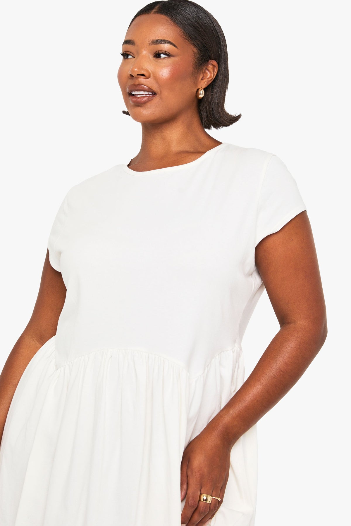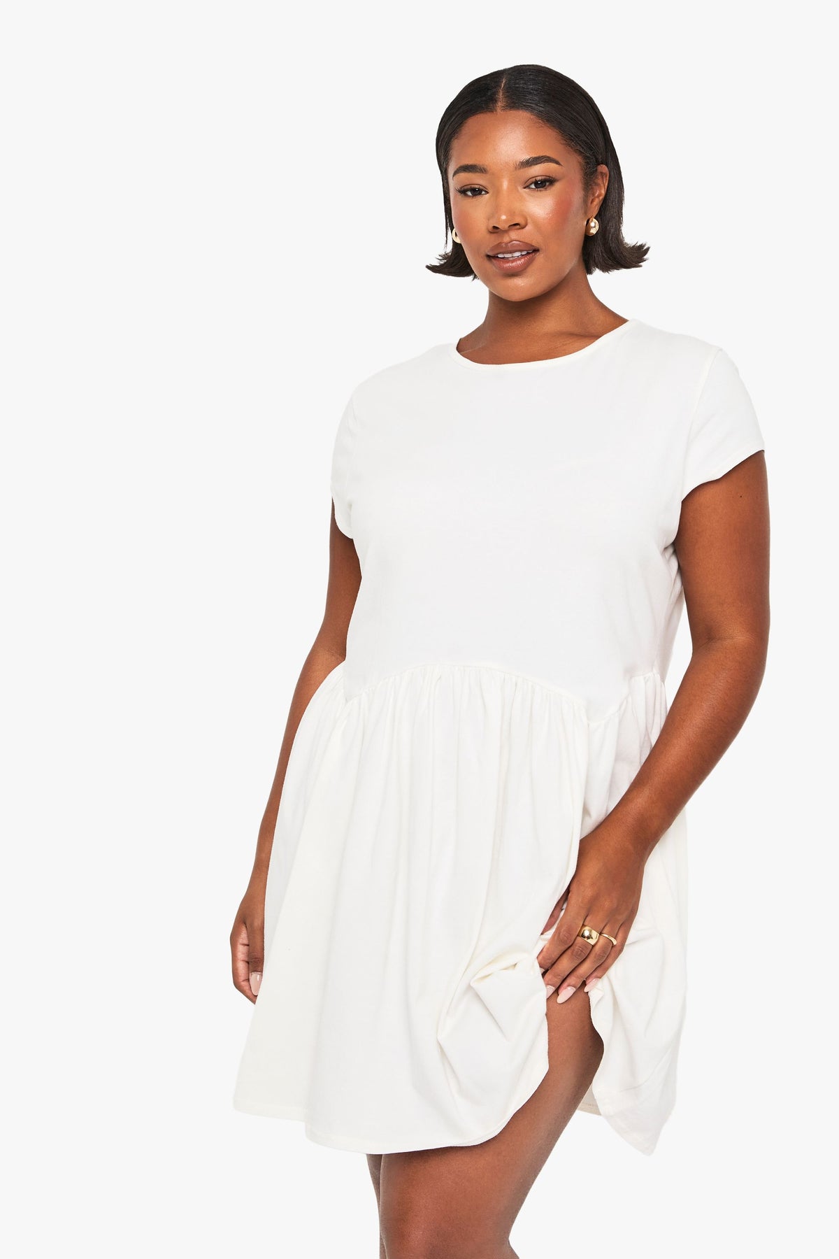 This cotton t-shirt smock dress from Boohoo combines casual comfort with feminine flair. The relaxed silhouette skims your curves beautifully while the gathered skirt adds a playful touch to your everyday wardrobe. Style with espadrilles and a lightweight cardigan for daytime outings, as shown, or pair with white trainers and a denim jacket for weekend brunches. For family gatherings, accessorise with delicate jewellery and a crossbody bag. The breathable fabric makes this dress perfect for warmer days, while its versatility allows for easy transition between seasons - simply add tights and ankle boots when the temperature drops. This fuss-free piece delivers that coveted throw-on-and-go appeal whilst maintaining a stylish edge that's quintessentially Boohoo.Discover plus cotton t-shirt smock dress available to buy online at us.boohoo.com. Available with quick delivery and easy return options. Shop now!Discover plus cotton t-shirt smock dress available to buy online at us.boohoo.com. Available with quick delivery and easy return options. Shop now!