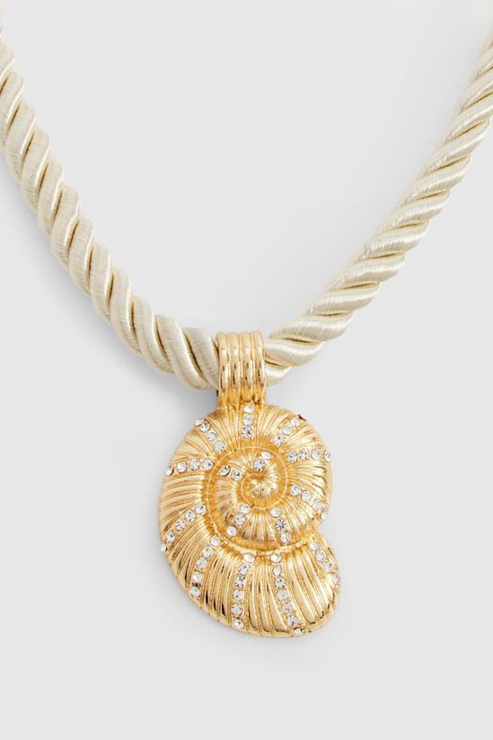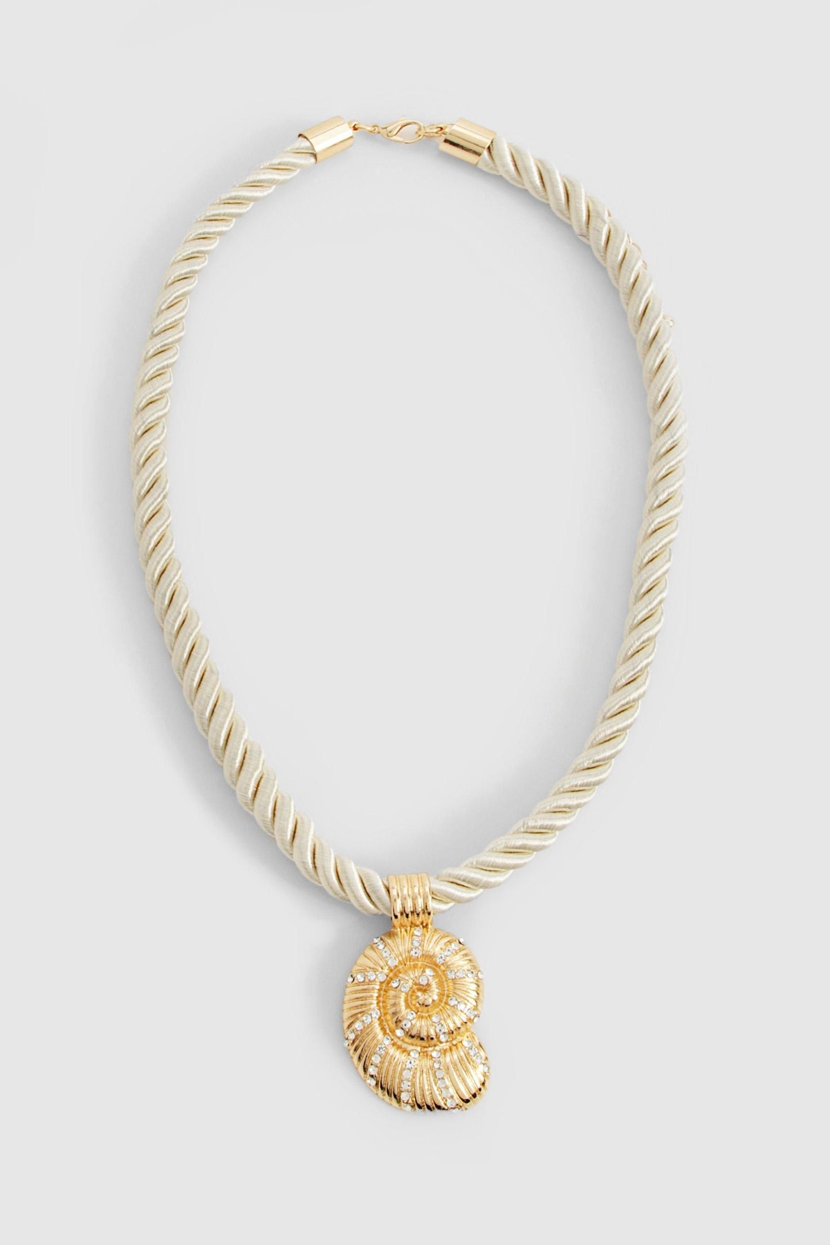 Channel coastal chic with this enchanting shell pendant necklace. The intricately designed spiral shell charm dangles elegantly from a twisted rope-style chain, creating a harmonious blend of textures. This versatile piece can effortlessly transition from beachside casual to evening elegance. Pair it with a flowing maxi dress and strappy sandals for a romantic seaside dinner, or layer it over a crisp white shirt and tailored shorts for a sophisticated yacht club brunch. The necklace's nautical inspiration makes it an ideal accessory for holiday wardrobes, while its timeless appeal ensures it remains a treasured piece long after the tan fades. Whether you're strolling along the promenade or sipping cocktails at a rooftop bar, this necklace will add a touch of maritime magic to any ensemble.Discover Embellished Shell Pendant Rope Necklace available to buy online at us.boohoo.com. Available with quick delivery and easy return options. Shop now!Discover Embellished Shell Pendant Rope Necklace available to buy online at us.boohoo.com. Available with quick delivery and easy return options. Shop now!