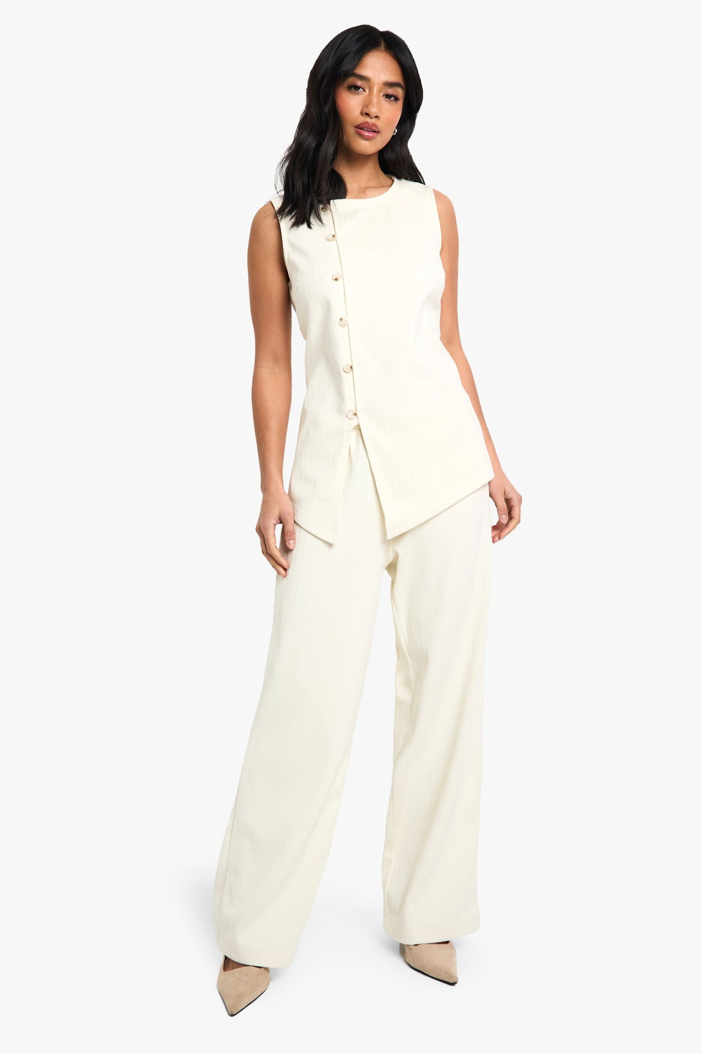 These corduroy wide leg trousers bring retro-inspired texture to your casual wardrobe. The wide leg silhouette creates a relaxed yet fashion-forward look that's perfect for the style-conscious Boohoo woman. Style with a sleeveless top as shown for a coordinated ensemble, or pair with a fitted turtleneck and trainers for daytime outings. The versatile design transitions effortlessly from family gatherings to coffee dates with friends. For cooler weather, layer with an oversized jumper and ankle boots. The high-waisted cut is particularly flattering on petite frames, creating the illusion of longer legs. These trousers offer the perfect balance of comfort and style for your everyday casual rotation.Discover Petite Cord Wide Leg Trouser available to buy online at us.boohoo.com. Available with quick delivery and easy return options. Shop now!Discover Petite Cord Wide Leg Trouser available to buy online at us.boohoo.com. Available with quick delivery and easy return options. Shop now!