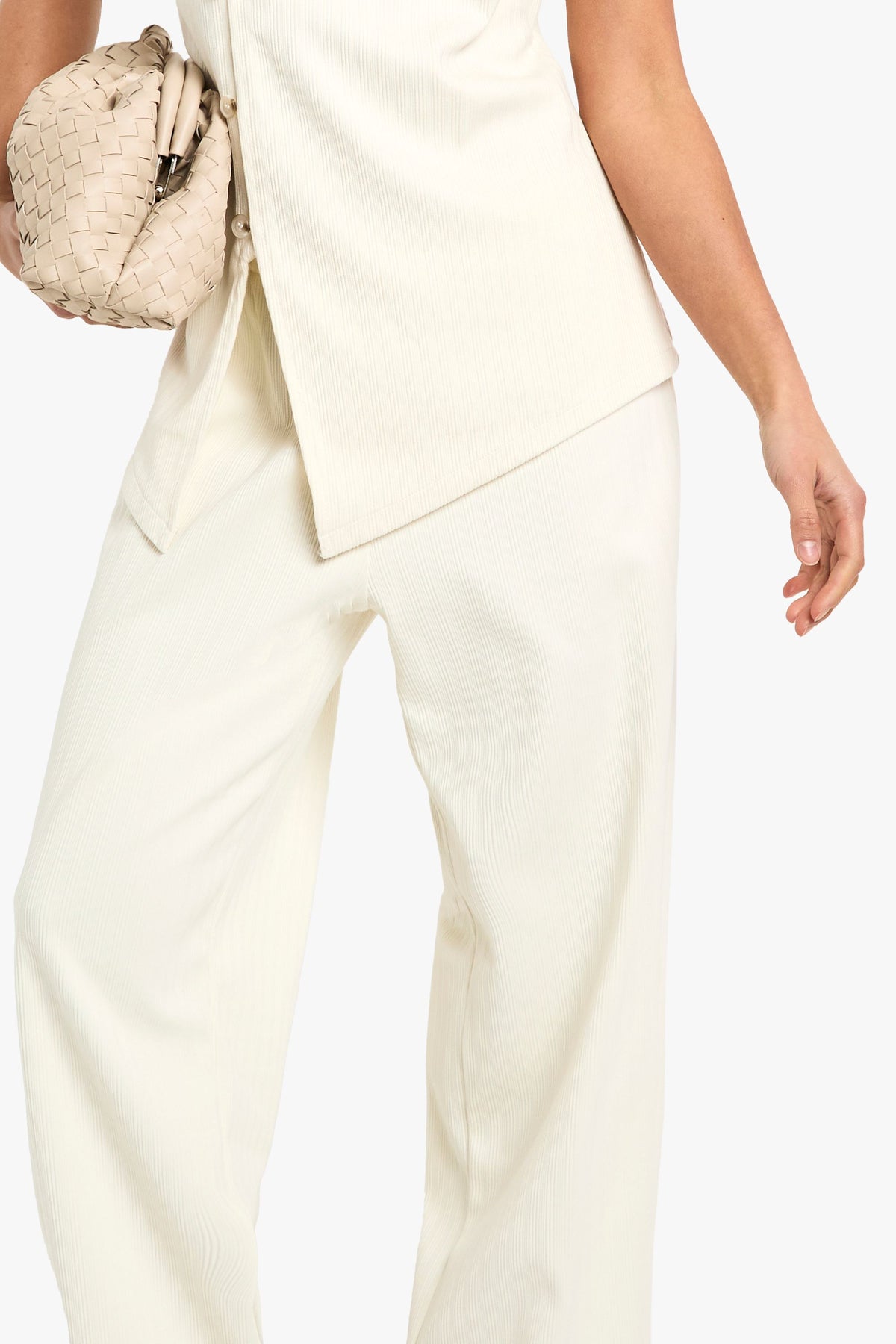 Textured corduroy wide leg trousers designed specifically for petite frames