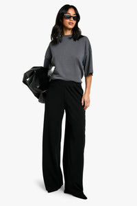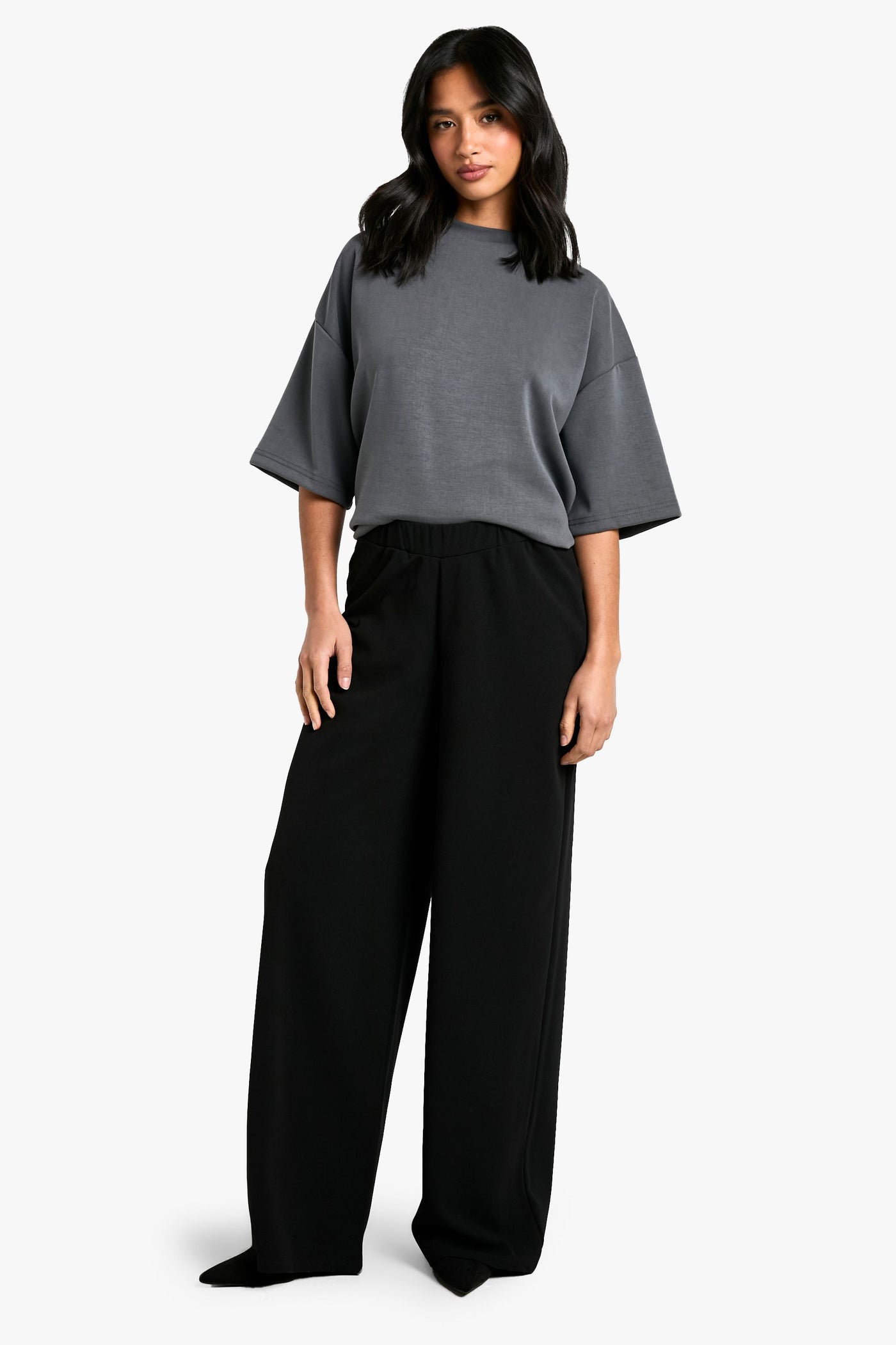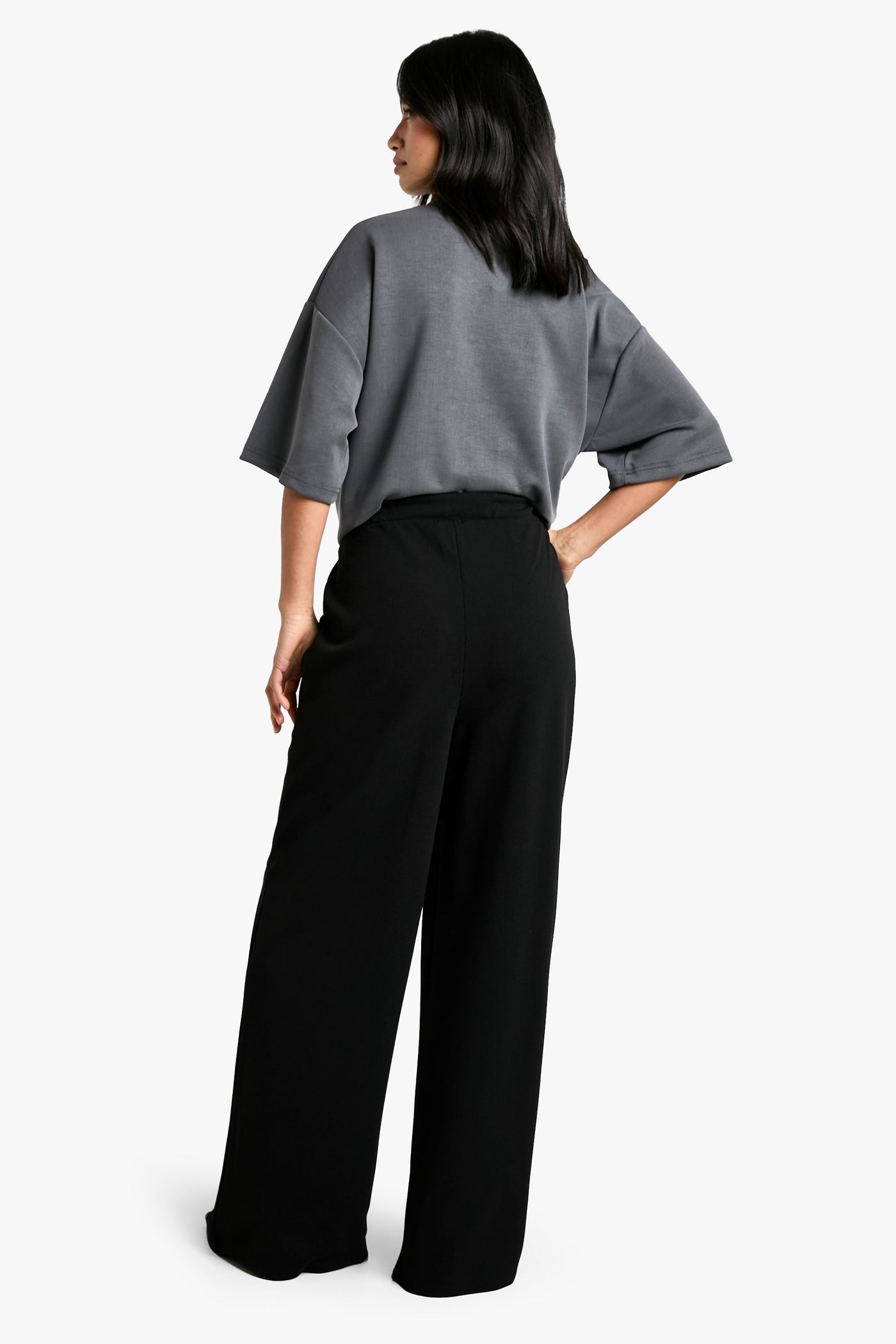 These wide-leg trousers from Boohoo's petite collection are a must-have for the fashion-forward woman who values both style and comfort. The relaxed silhouette offers a contemporary look while the high-waisted design creates a flattering and leg-lengthening effect. Crafted from stretchy jersey fabric, these trousers ensure ease of movement and all-day comfort, making them perfect for various casual outings. Style them with a cropped tee and trainers for a laid-back daytime look, or dress them up with a fitted blouse and heeled sandals for a chic evening ensemble. The versatility of these trousers makes them an excellent choice for family gatherings, brunch dates, or casual Fridays at the office. Embrace the latest trends with these effortlessly cool and comfortable wide-leg trousers.Discover Petite Stretch Wide Leg Trousers available to buy online at us.boohoo.com. Available with quick delivery and easy return options. Shop now!Discover Petite Stretch Wide Leg Trousers available to buy online at us.boohoo.com. Available with quick delivery and easy return options. Shop now!